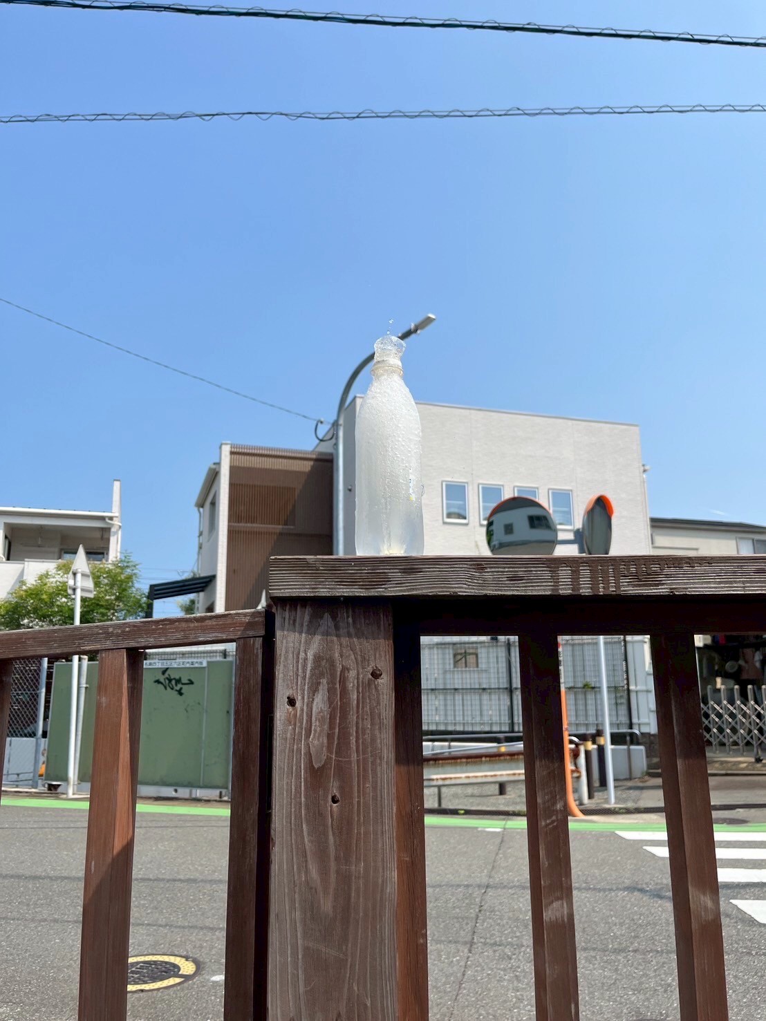 科学の実験タイムが始まりました✨炭酸水(no sugar)の泡のつぶが太陽の光に反射してキラキラ✨🫧