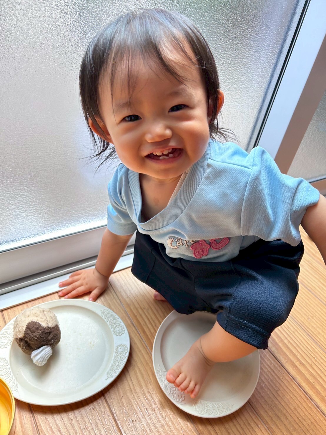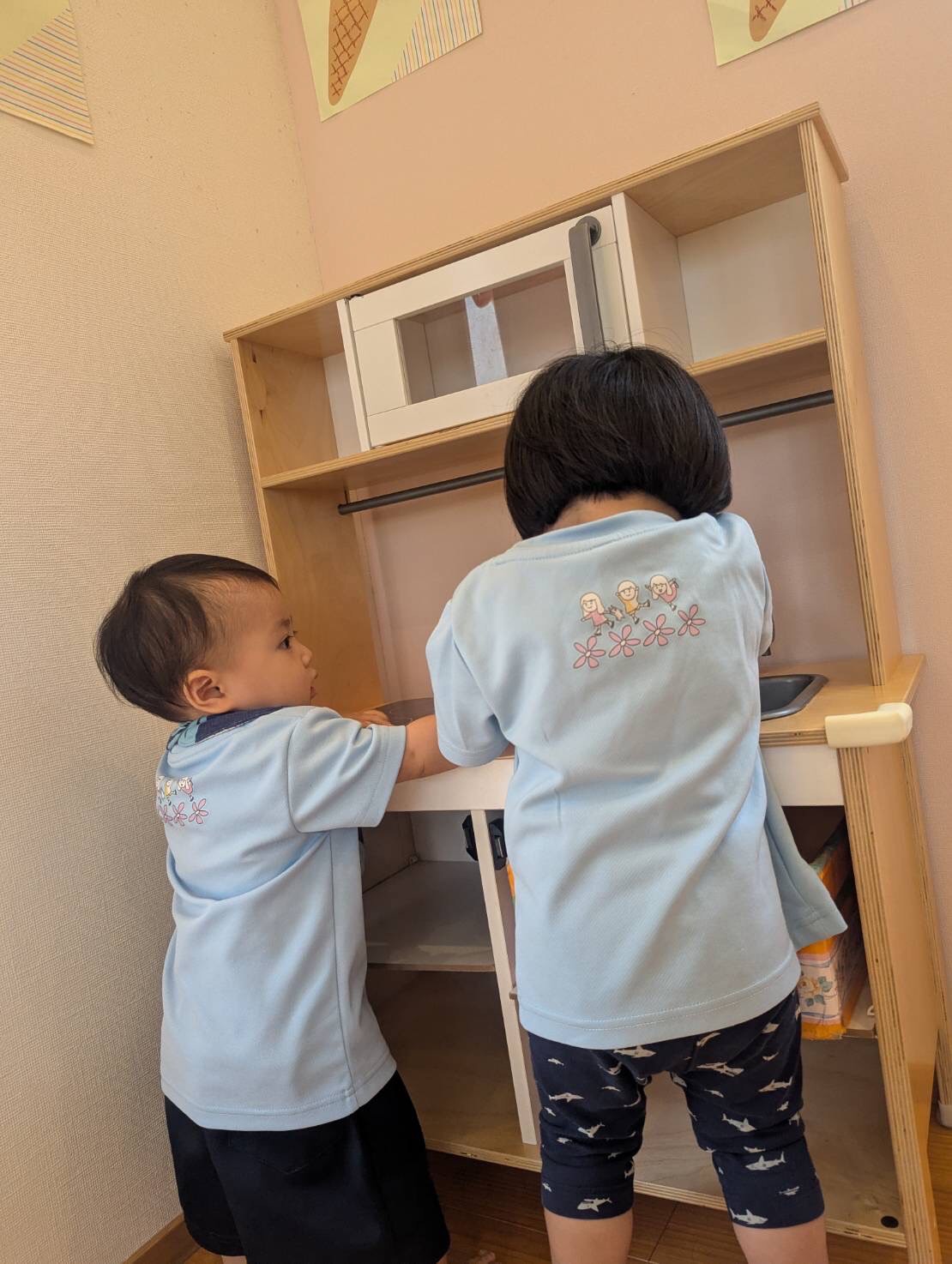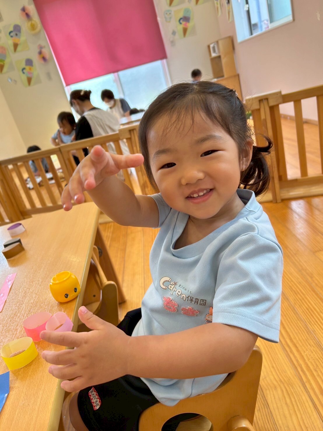 くるっと上手に丸い形に糊付けが出来ると、嬉しそうに保育者に見せていましたよ🪢✨ひよこ・りす組さんは、ままごとをしました。