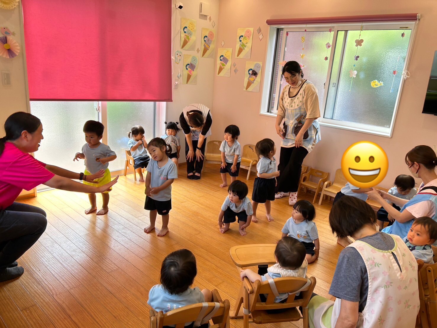 『head shoulders kneees and toes』の歌に合わせて、だんだん速くなるテンポも楽しみながら踊っていた子ども達です👦👧🎶