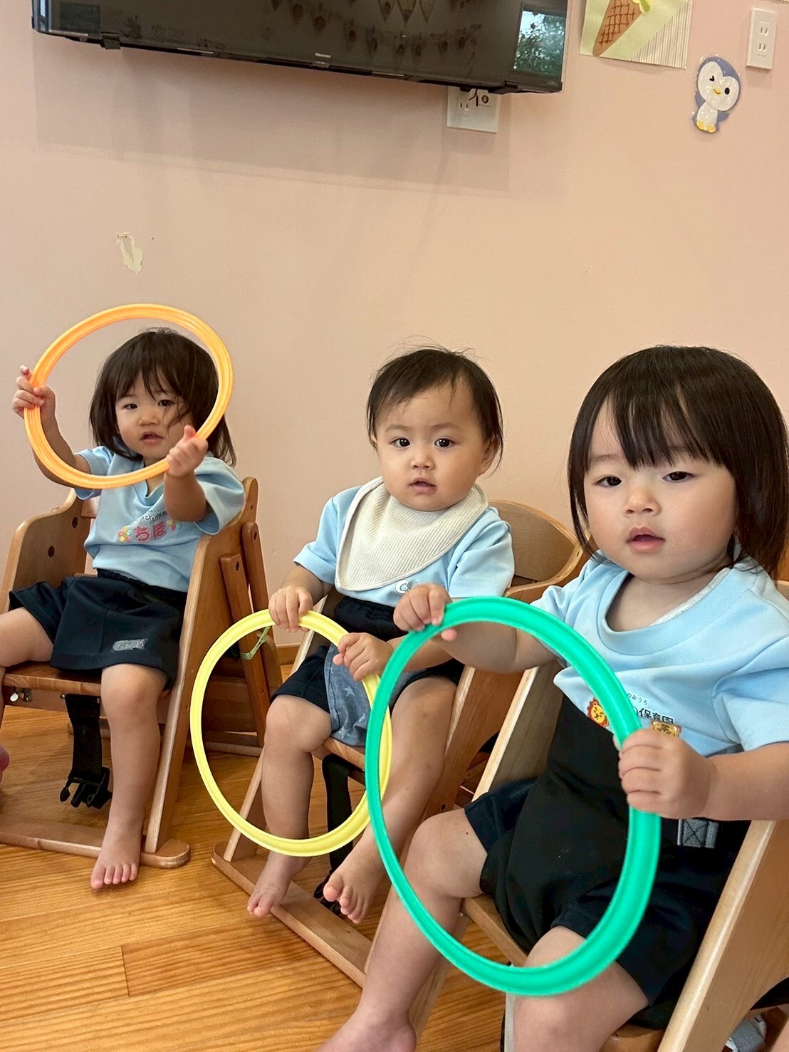 最後はカラーフープを持って『バスごっこ』の歌に合わせて、運転🚌‼︎