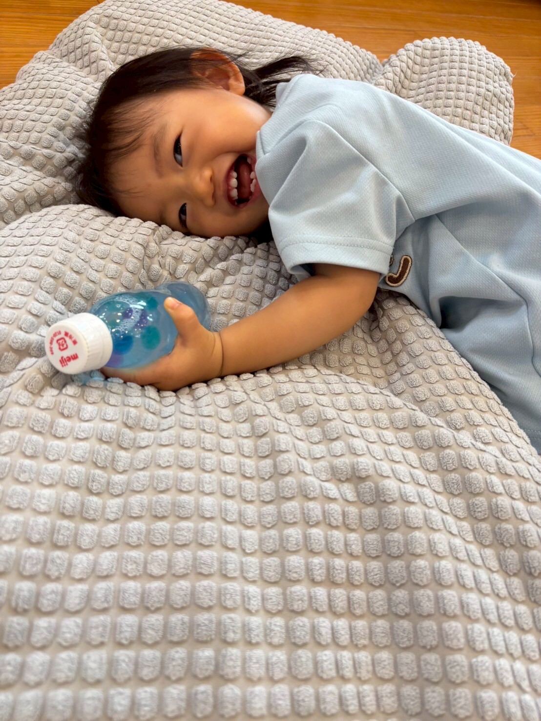 キャッキャ✨❣️センサリーな海のビニール袋遊びでは、海のなかに光るキラキラなビーズや小さな生き物をみつけて先生に教えてくれました✨