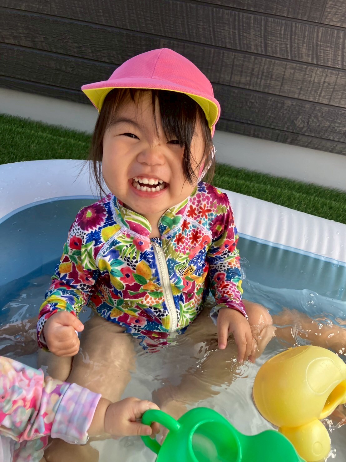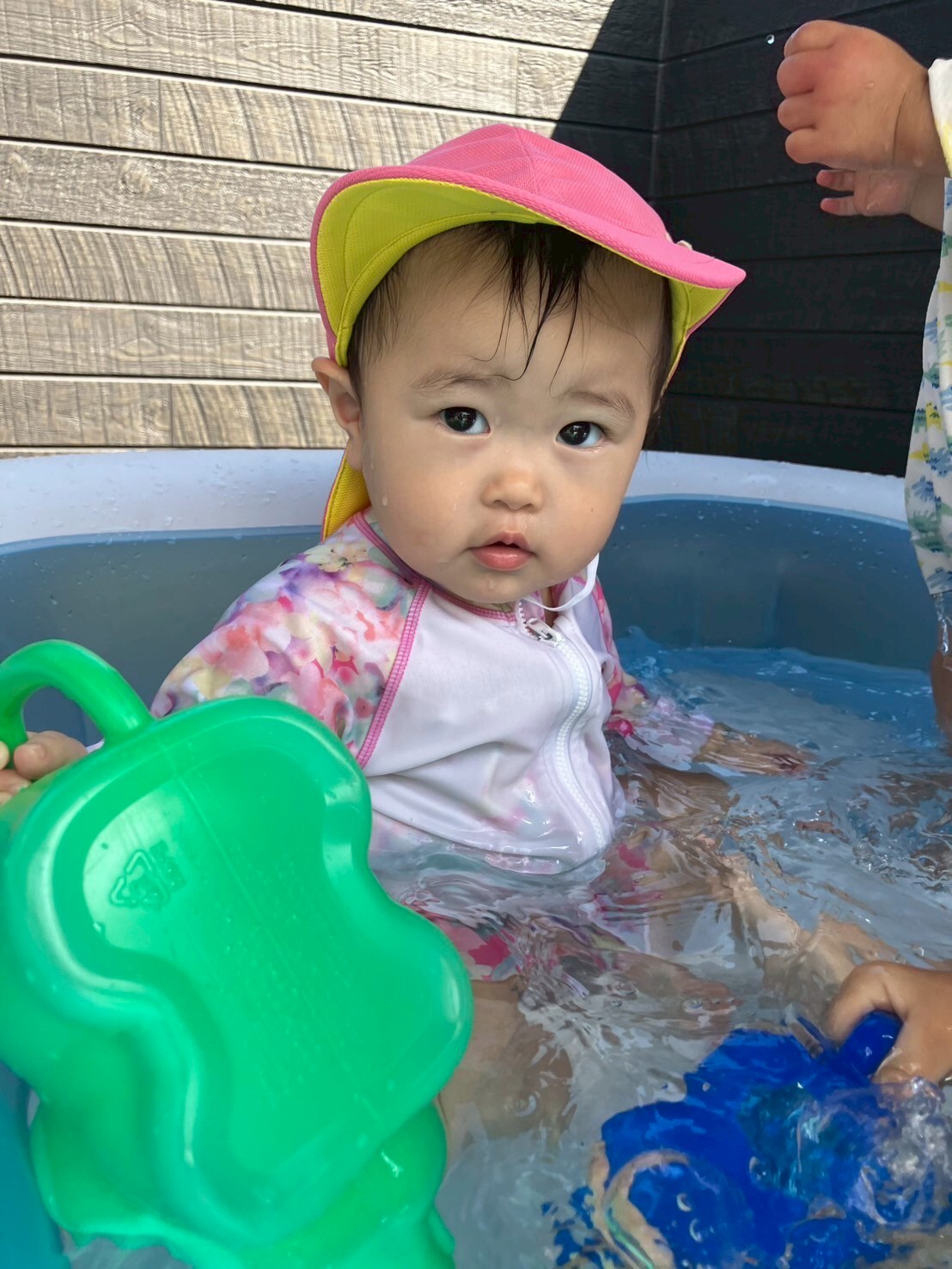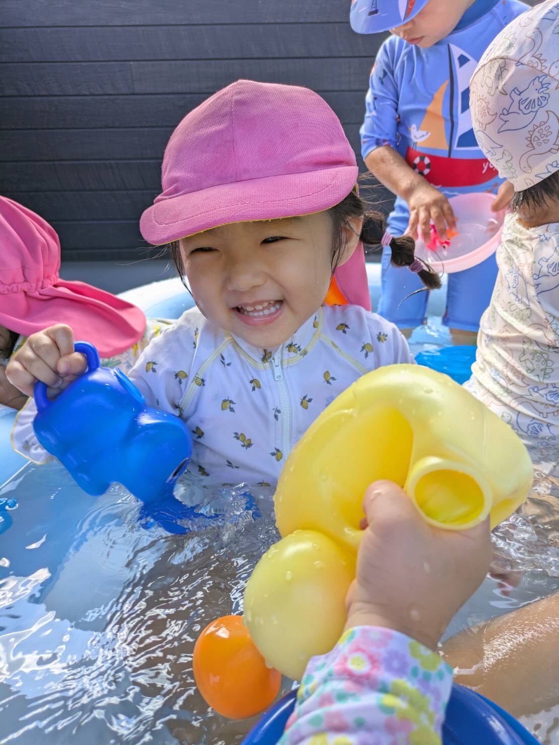 水遊びグループはお外に出ると、さっそくプールにドボンッと浸かって気持ちよさそうにしていた子どもたち🐳✨