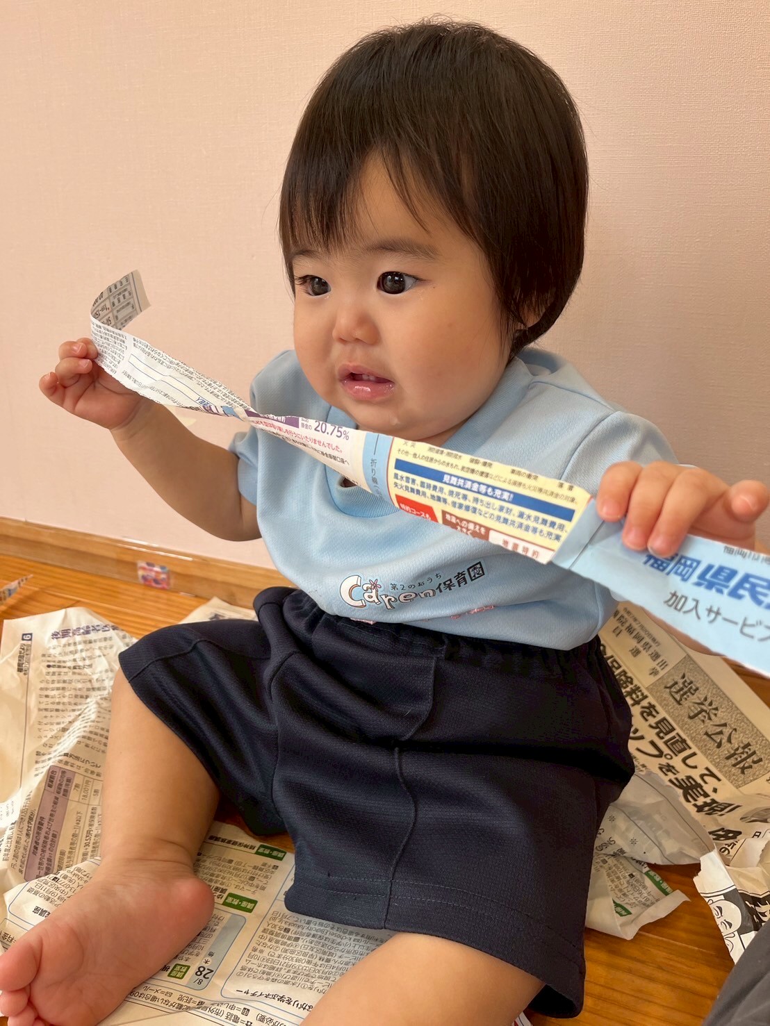 みんな真似っこがとても上手です😊紙遊びもして豪快にビリビリ破いたり、マントにしてアンパンマンになりきったりして遊びました。