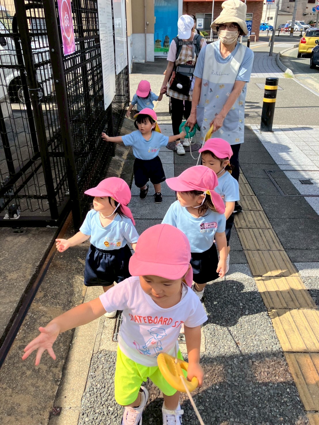 電車やお魚の壁面に手を振ったり、元気いっぱい歩いたりしていましたよ🌼