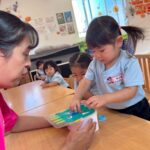 モンスターにパンプキンを食べさせる活動では、「one、two、three」とパンプキンを数えてお口の中に入れることができていました🎃