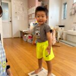 『大きくなったかなー?』と声をかけられると、嬉しそうに測定器にのっていましたよ!