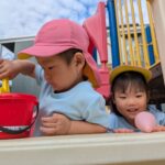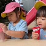 公園では滑り台を滑ったり、砂場セットで砂遊びやお店屋さんごっこをしたり…。