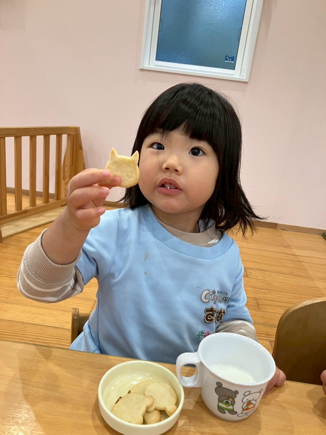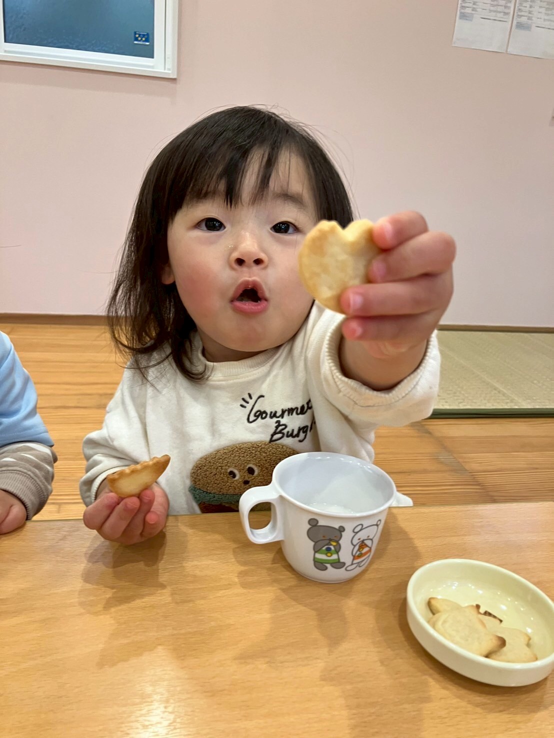 朝の会でクッキー作りをすることを伝えると、「やったー🙌」と大喜びしていた子どもたち💕