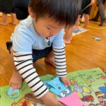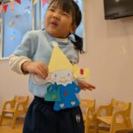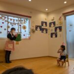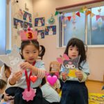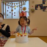 バースデーケーキのロウソクを吹き消して、みんなからの『おめでとうー!』の言葉にニコニコのお友だちでした♡先生からの出し物はサンリオの着せ替えパーティー🎉