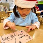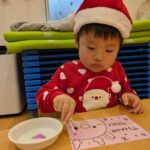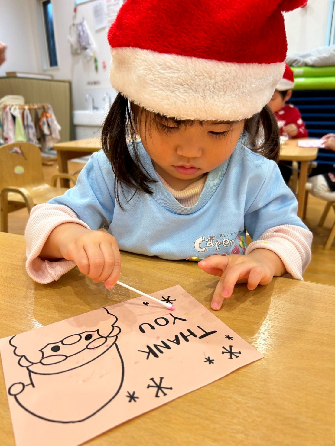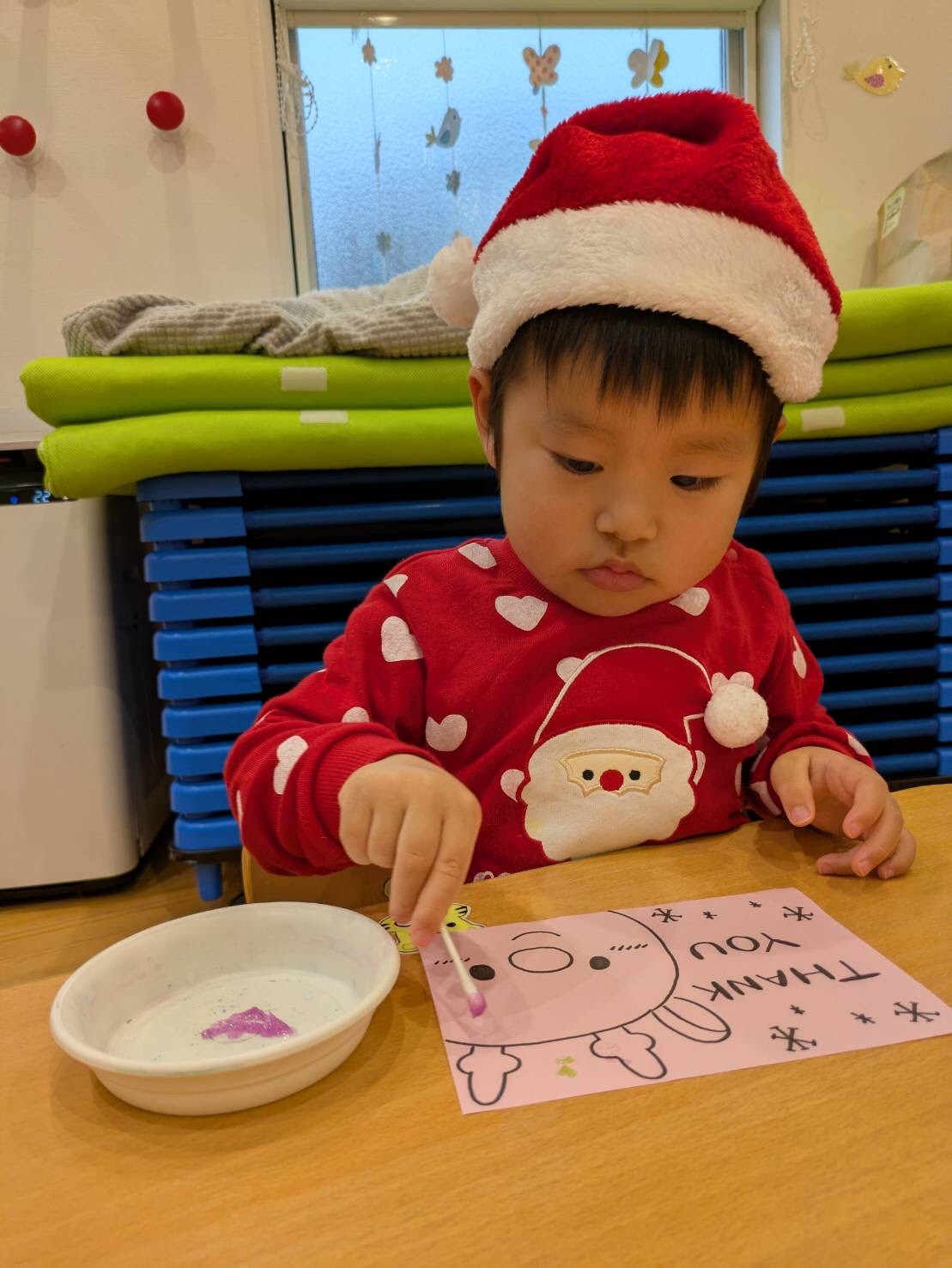 今朝みんなのところにプレゼントを届けてくれたサンタさんに、お礼のカードを作りました。
