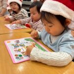 「グーチョキパーでなにつくろう👊✌️✋️」の手遊びを英語のクリスマスバージョンで歌ったり「スポットのはじめてのクリスマス」の絵本を見ましたよ🐶