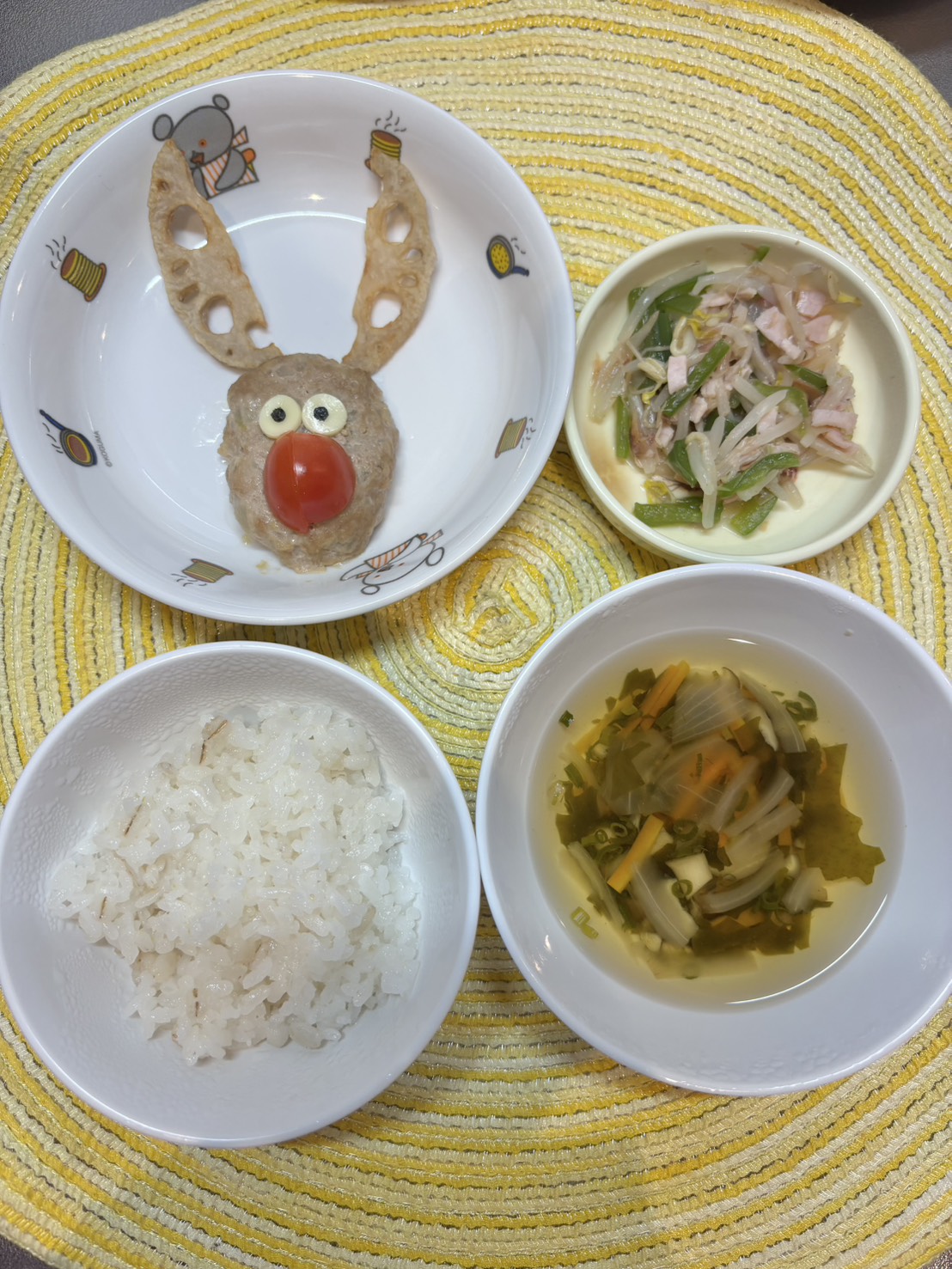 給食はかわいいトナカイさんのハンバーグ!