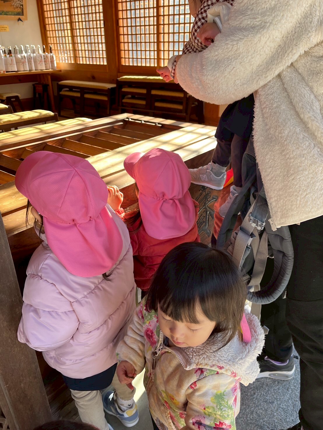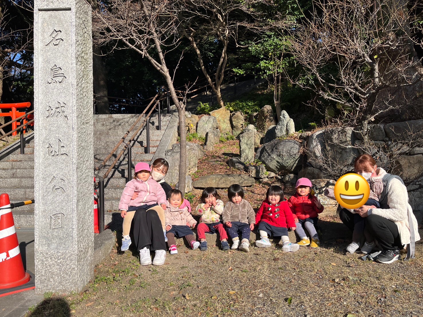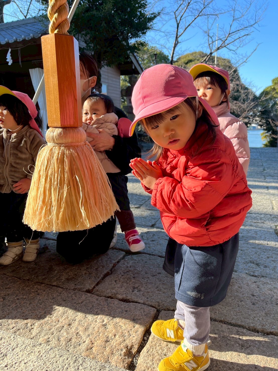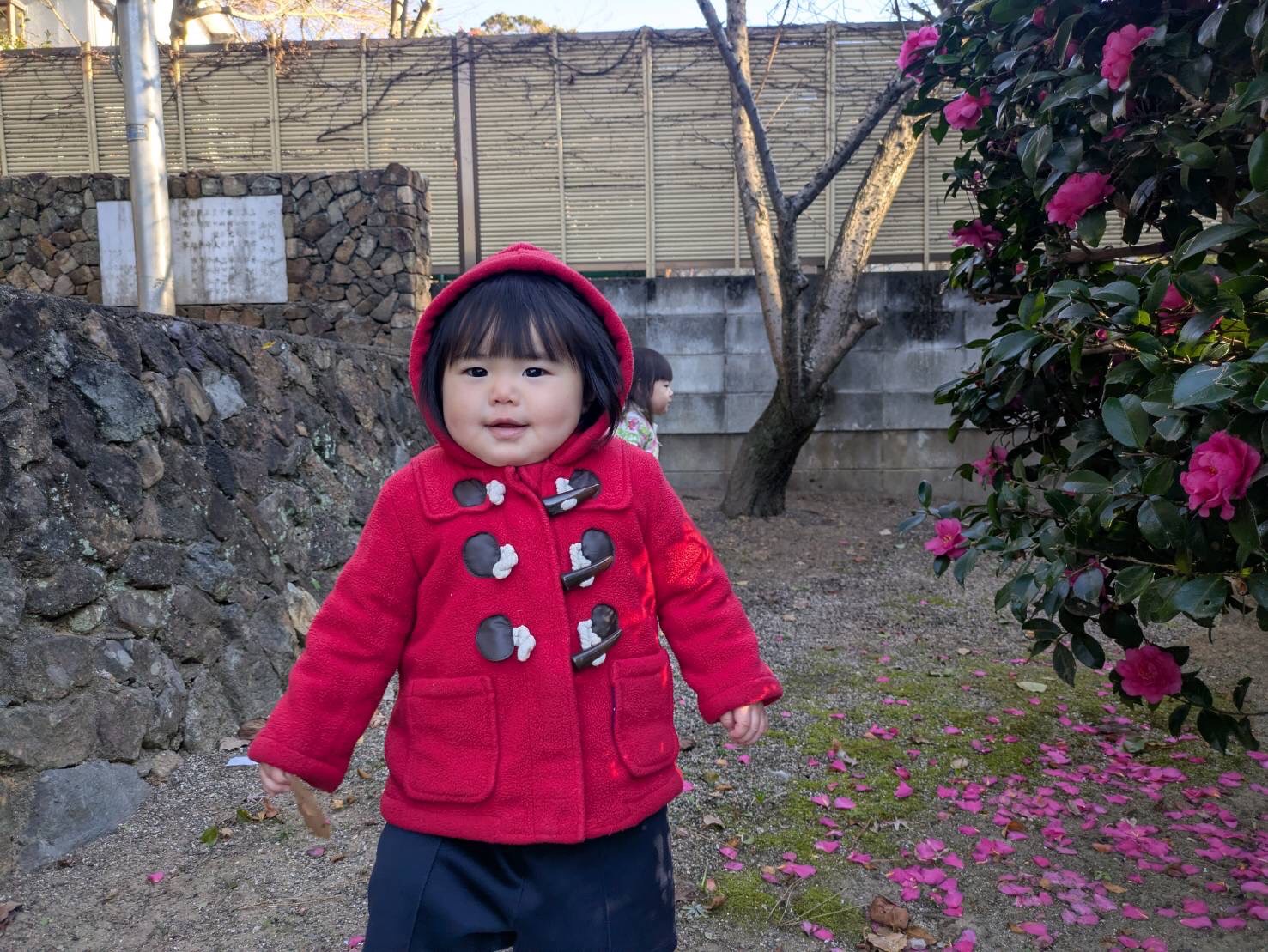 鳥居をくぐって清々しい気持ちになって歩いたり、きれいなサザンカが咲いていて『かわいいねー♡』と眺めたり、いつも見ることが出来ない景色にお目々をキラキラさせていた子ども達でした✨◉ぱんだ組&りす組低月齢児さん