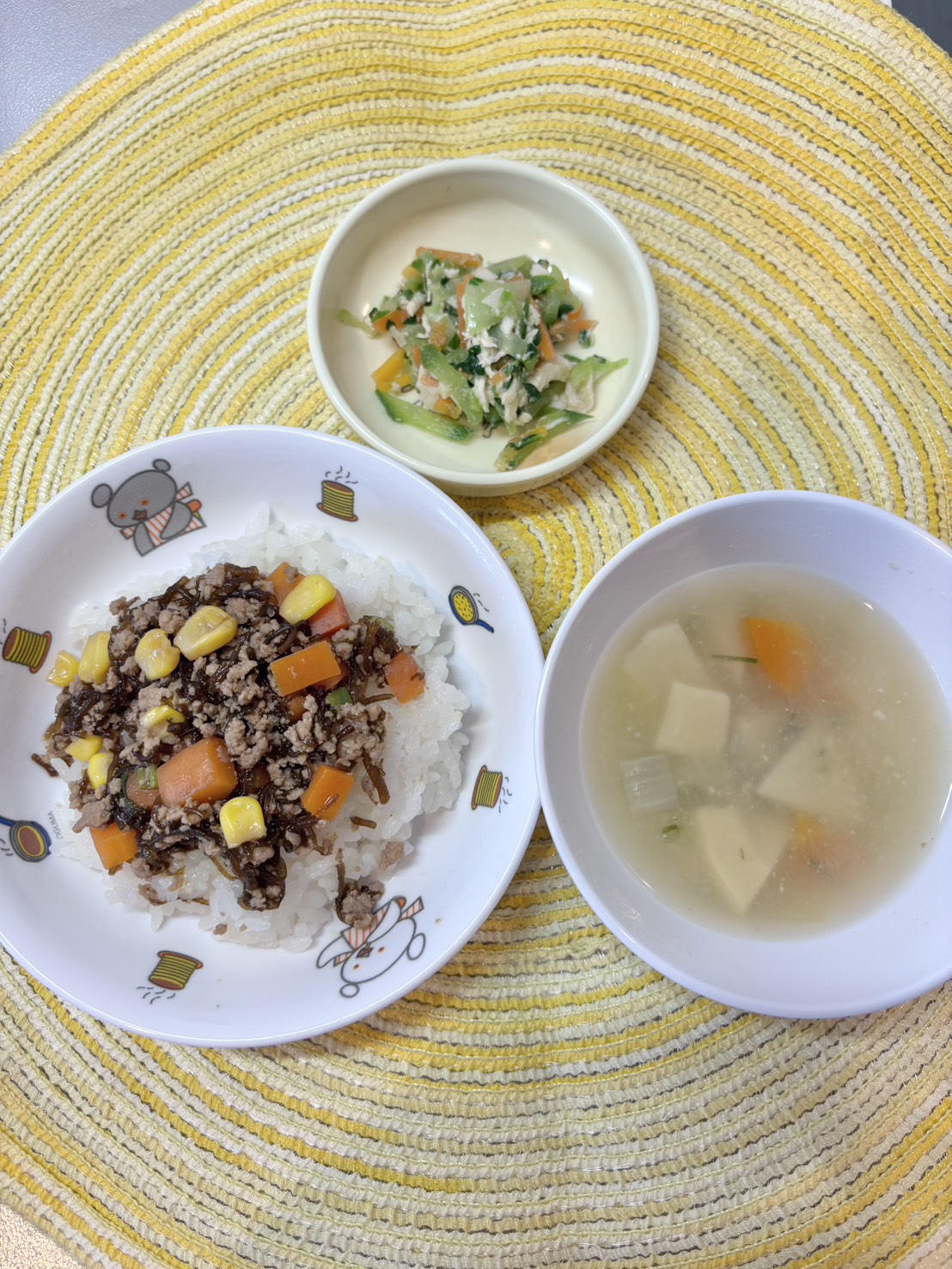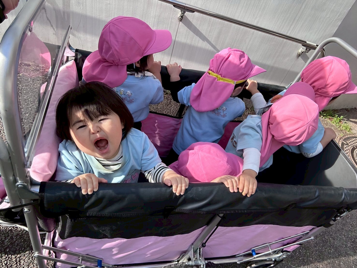 英語レッスンのあとはお散歩に行き、ゴミポイ捨てはダメだよのおはなしや、警察パトカーや大きなトラックの運転手さんとバイバイしたり、これは苔だよ✨の植物のお話しをしながら、たくさん歩きました✨【名島園の今日の給食です】