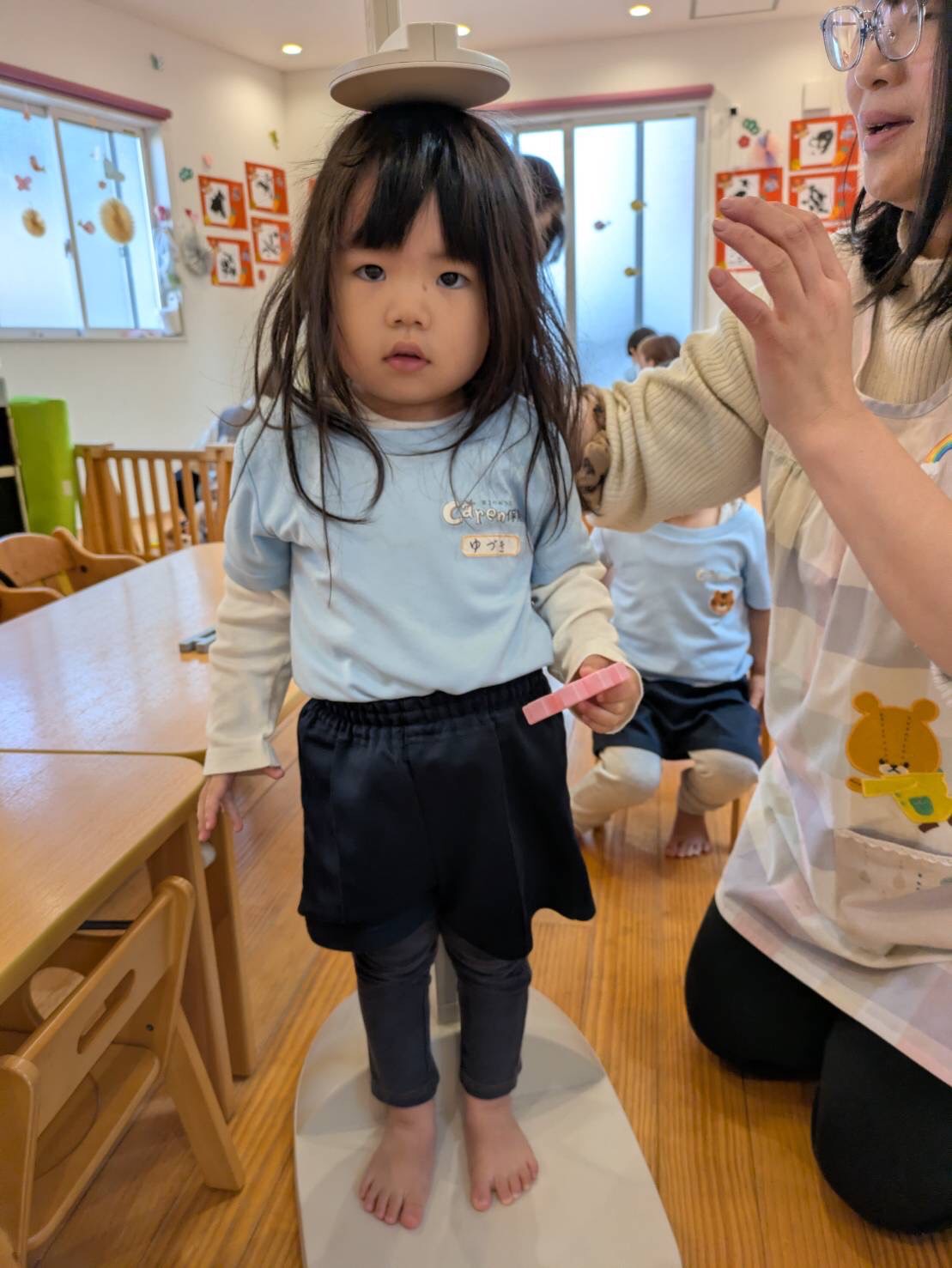 先生の話を聞いて落ち着いて避難することができました✨🚶♀️「大きくなったかな?」の身体測定をして、公園へ❣️