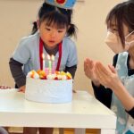 ケーキのロウソクを吹き消して、みんなから大きな拍手をもらい、嬉しそうな笑顔が見られました😍🎂先生たちからの出し物は先生当てと音当てゲーム!