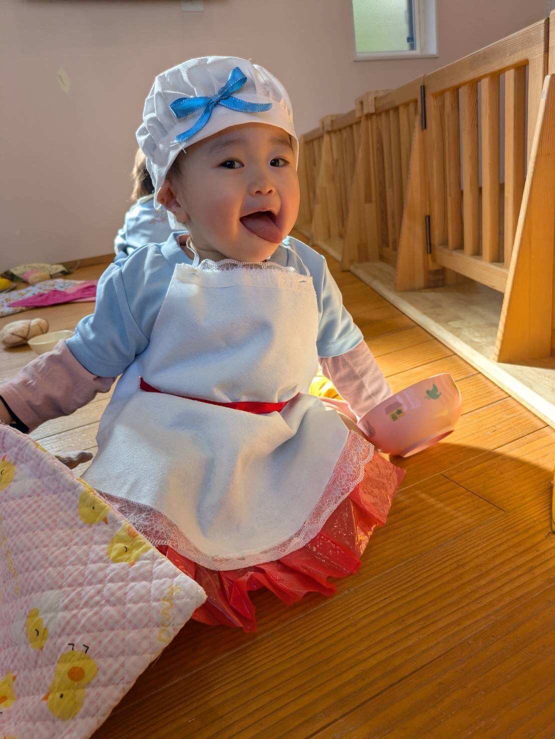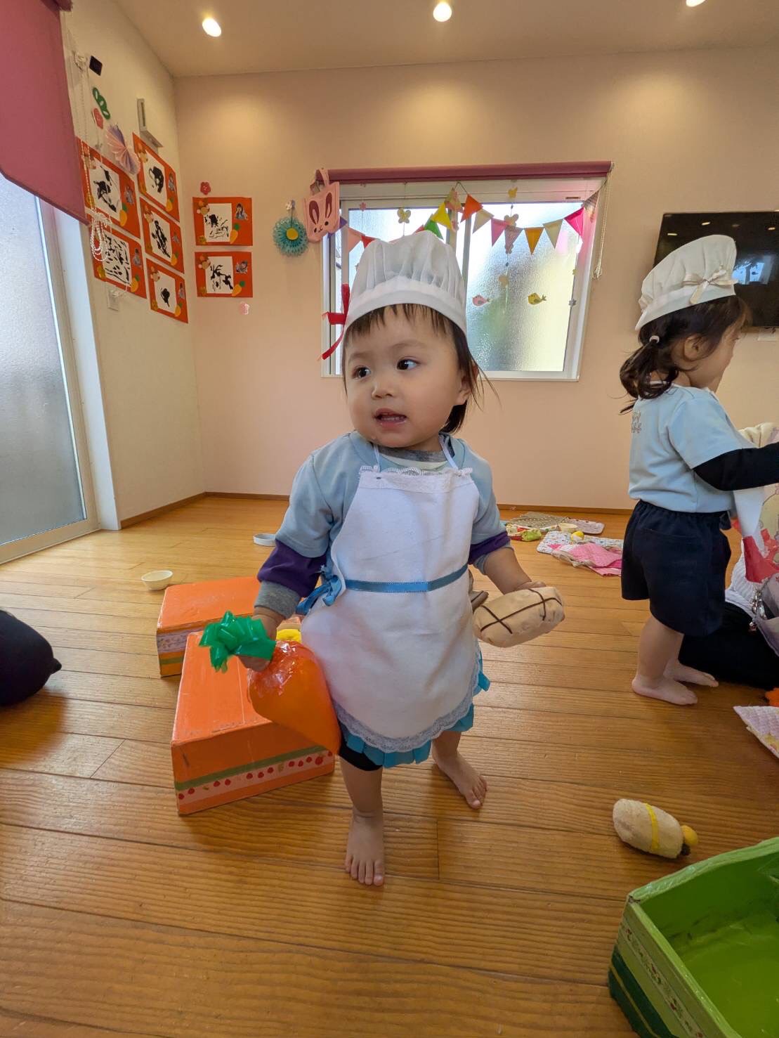 ままごとでは、エプロンをして可愛いお店屋さんがいっぱいでした✨