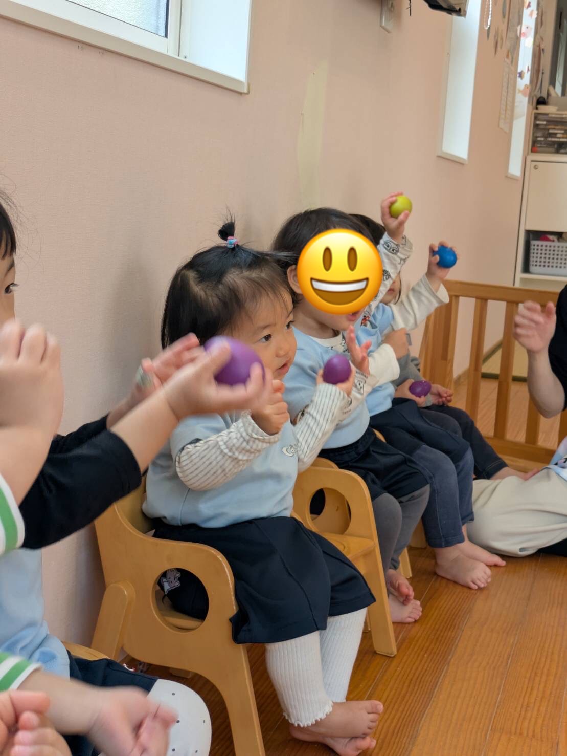 みんなでまゆみ先生のフリを見ながら、マラカスをシャカシャカ!鳴らして楽しみました🥚