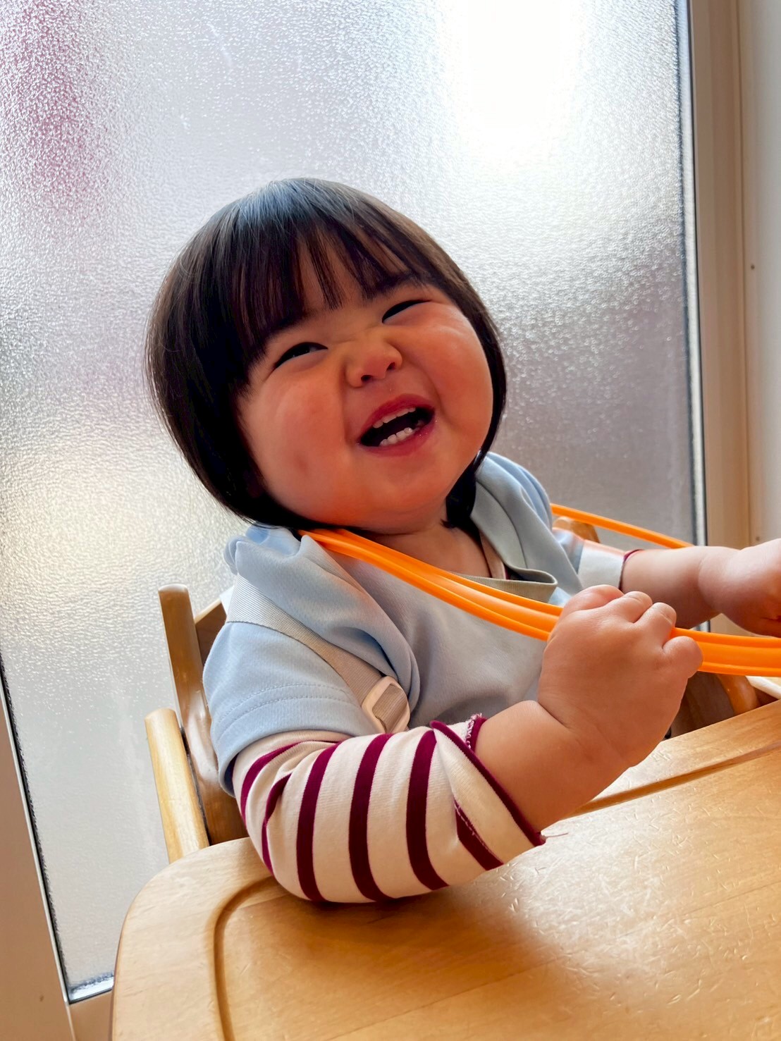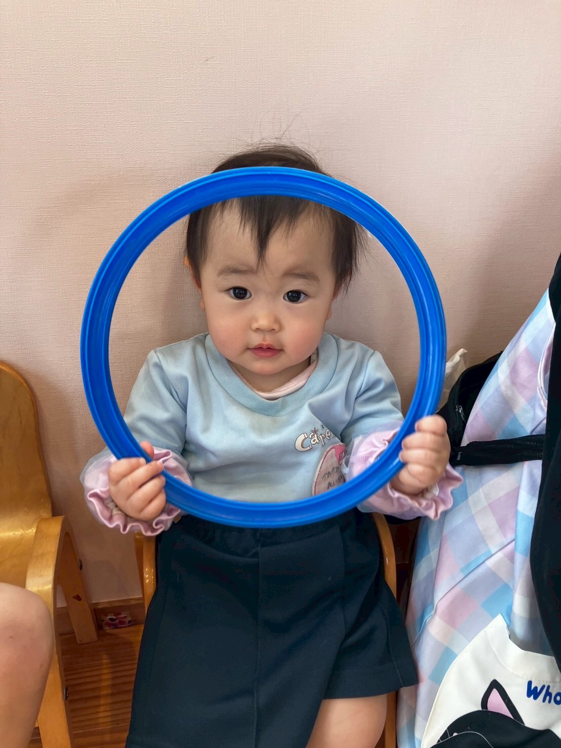 ひよこ組さんもぱんだ組さんを真似て自分でまゆみ先生にフープを返すことが出来ました🥚