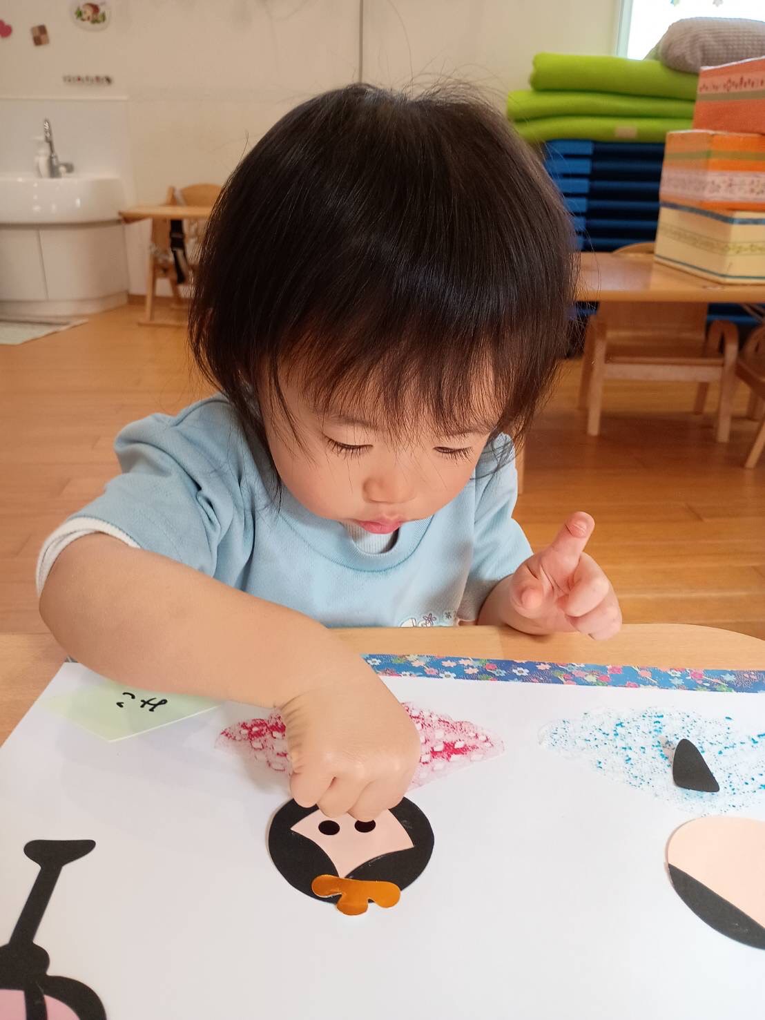 ぱんだ組さんはクレパスを使ってお顔を描き、たくさんあったパーツを次々に糊付けして製作を楽しみました✨
