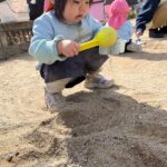 先生が砂山を作ると、平に戻したり、自分のバケツに移したり、砂遊びを思う存分楽しみました✨