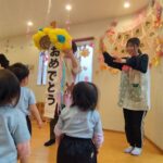 マジックでは仕掛けにちょっぴりびっくりしていたお友だちもいましたよ🫢最後は、3月生まれのお友だち3人で大きなくす玉をわって「おめでとう〜👏」と盛りだくさんでお祝いをしてもらい嬉しそうに笑顔を見せてくれました💕