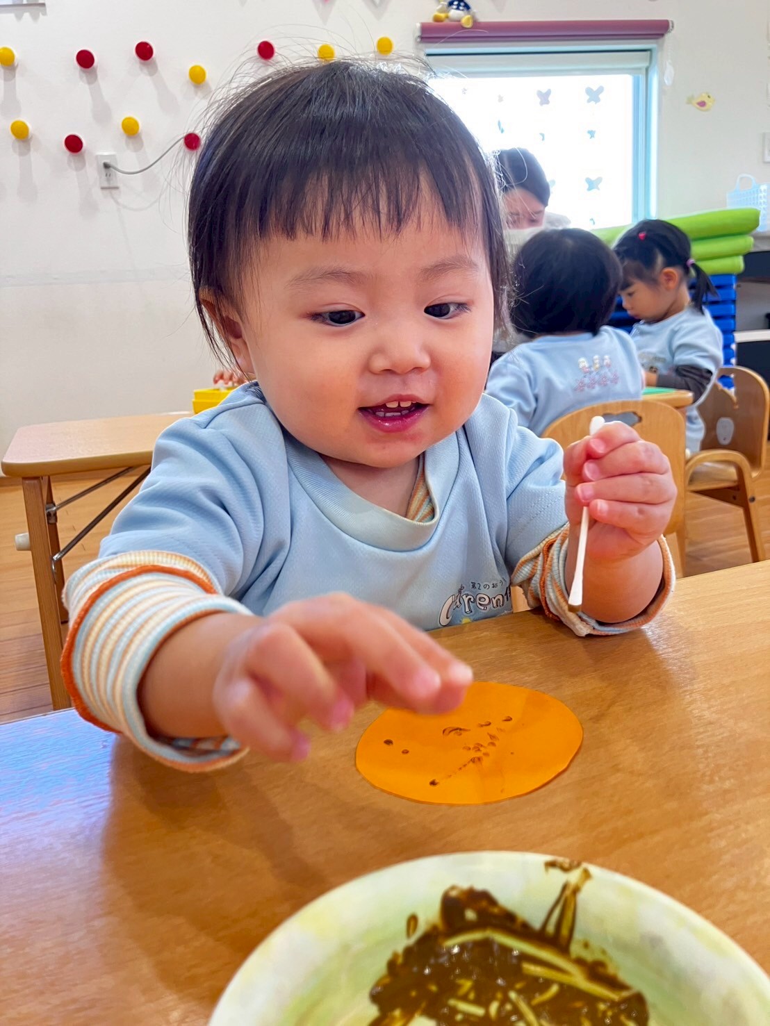 1月14日 2026.01.14 / 未分類 今日はこたつの製作でみかんを作りました🍊 製作の見本と綿棒を見せると、「したい〜!!」とやる気満々の子どもたち😊💕 絵の具のついた綿棒でチョンチョンと模様をつけると、、、 美味しそうなみかんが出来上がっていましたよ✨ そ…続きを読む