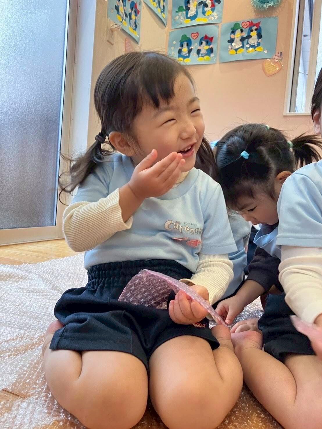 2月25日 2026.02.25 / 未分類 今日は梱包材を使って遊びました。 梱包材を床に敷いて、その上を歩いてプチプチ!という感触を楽しんだり、指でギューっと押してプチッ!と弾ける音に笑顔を見せたり…😆 小さく切った梱包材をケイタイ電話に見立てて「もしもしー?」…続きを読む
