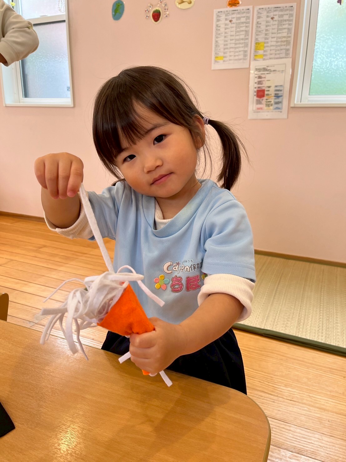 2月3日 2026.02.03 / 未分類 今日は節分♪ みんなで邪気を払う為に豆まきをしました✨ みんなで「おには〜そと!ふくは〜〜うち!」豆に見立てたボールを投げて遊んでいると… 本物の鬼が登場です😨❗️ キャ〜〜〜💦💦 一瞬にして、悲鳴と涙が止まりません…😭…続きを読む