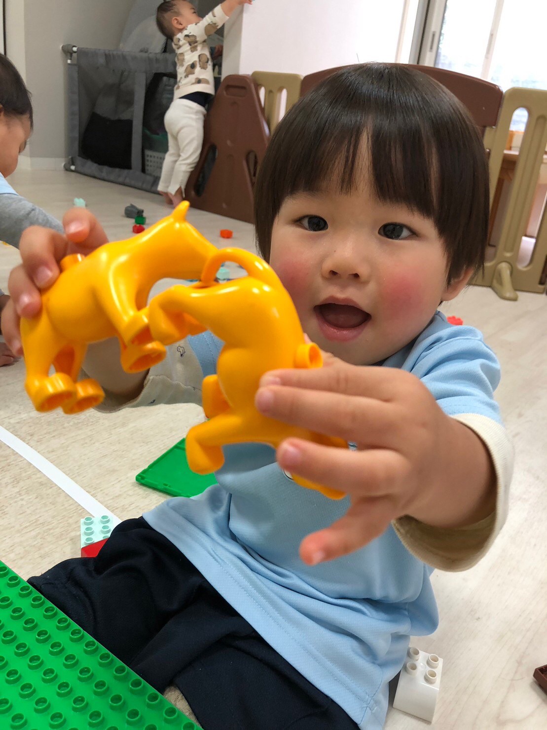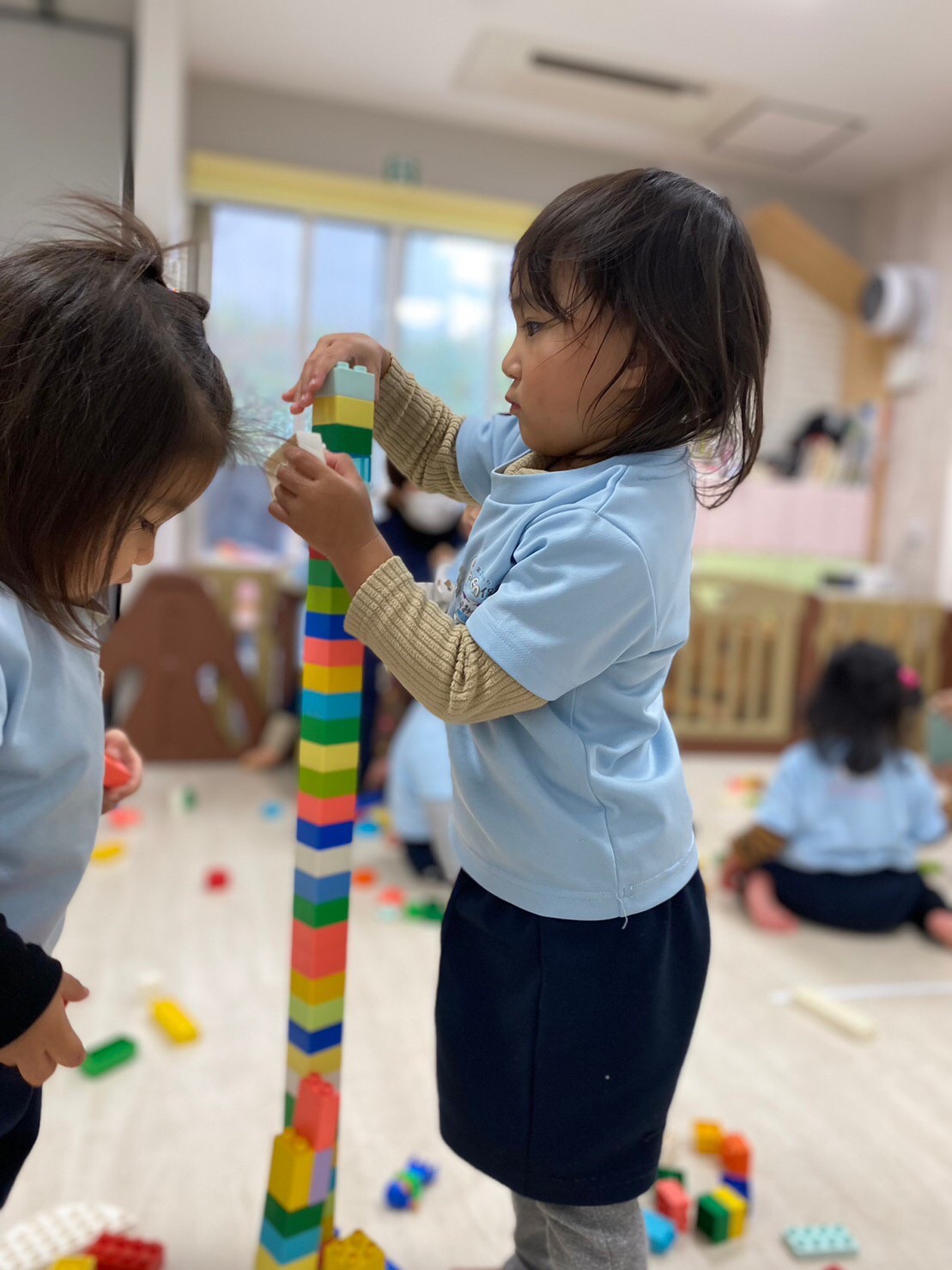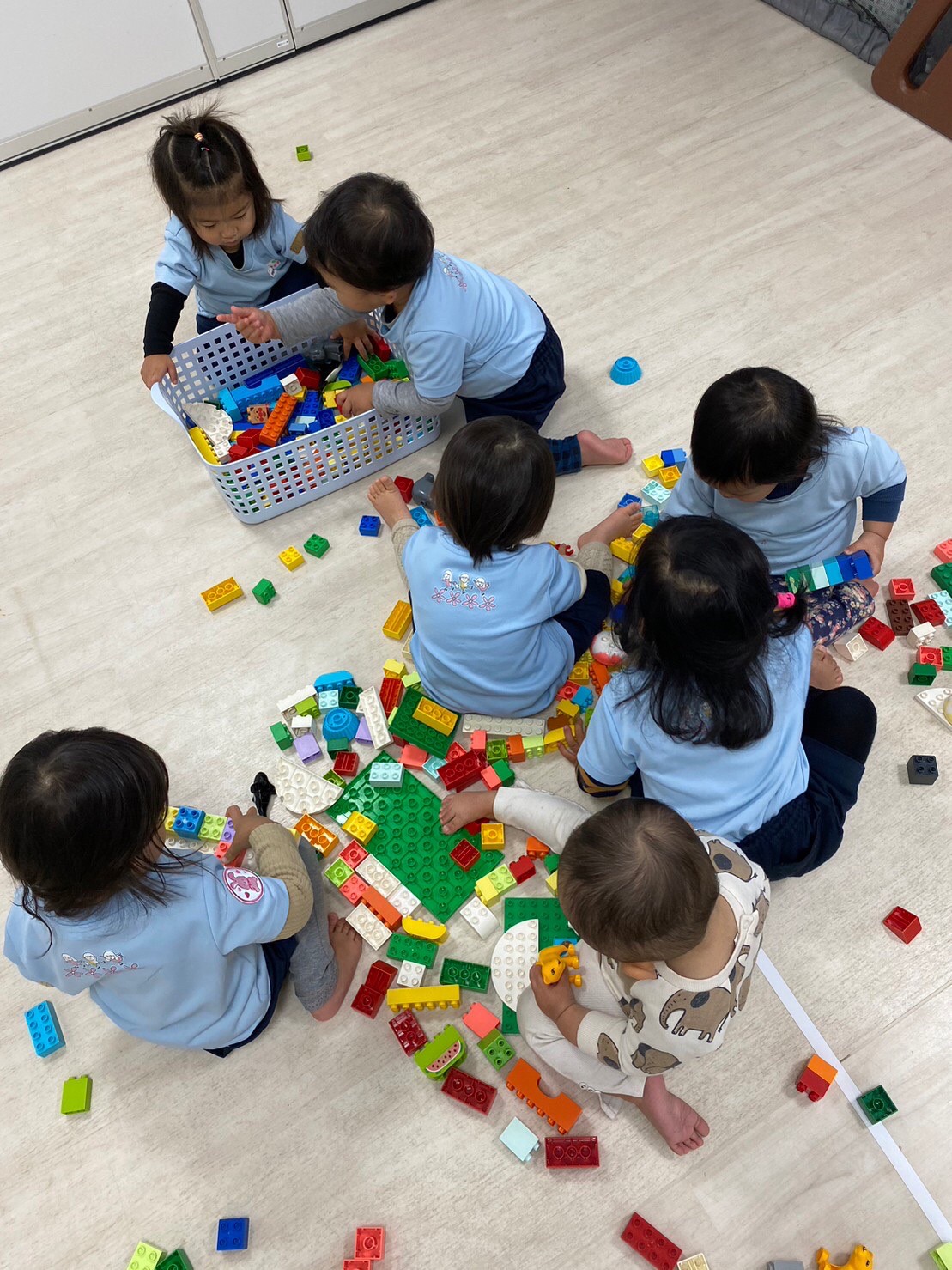 絵本の読み聞かせでは楽しくお話を聞いたり興味津々で参加することができました💓朝からノリノリ元気いっぱいにダンスをしたり、ブロック遊びをして過ごしました😊✨