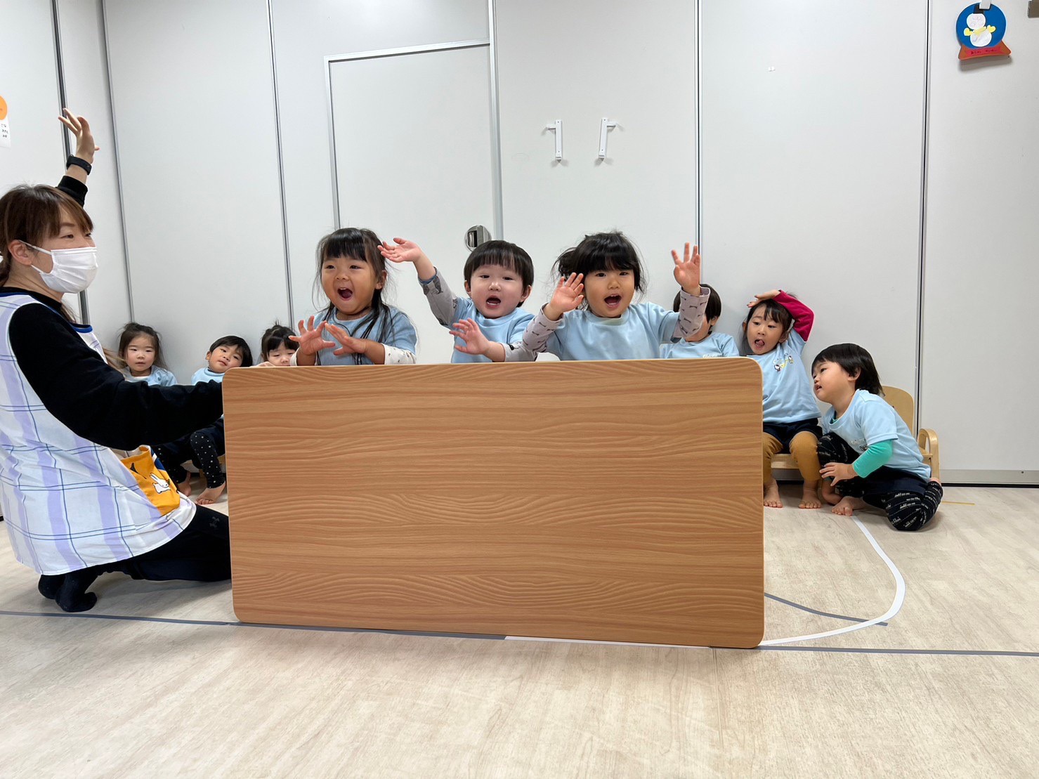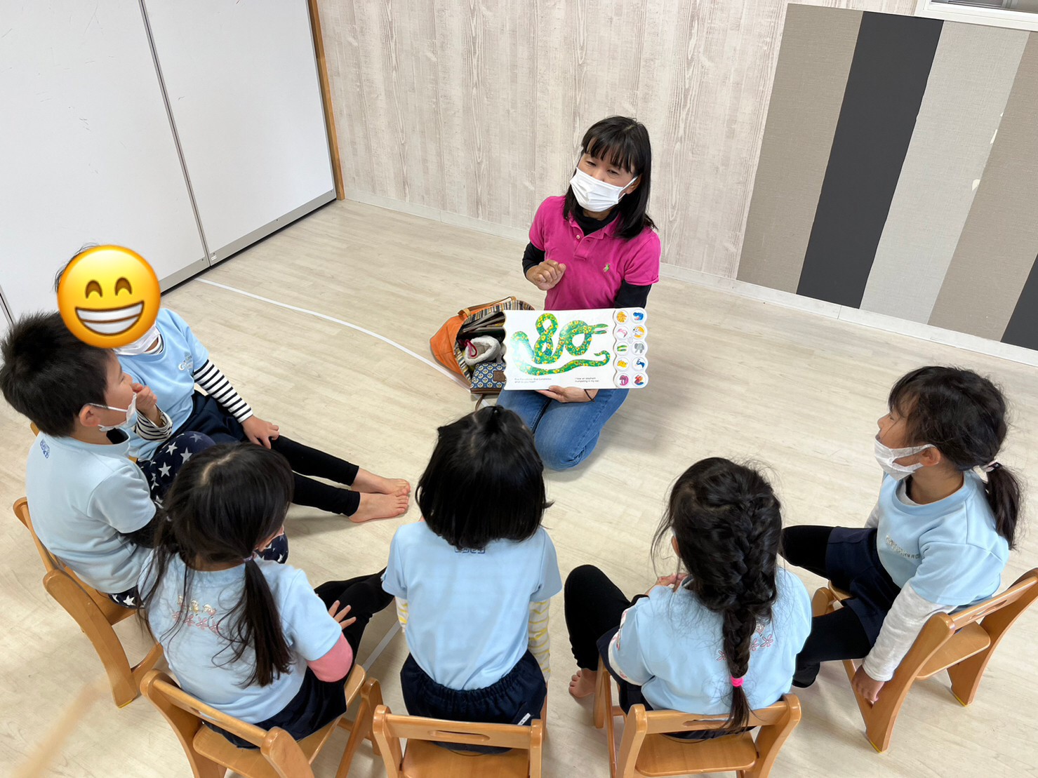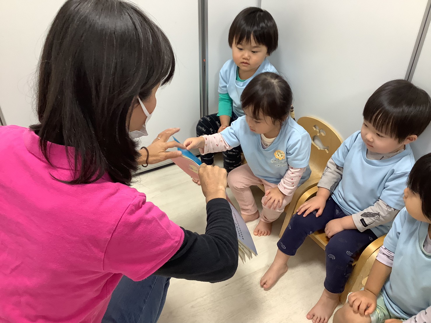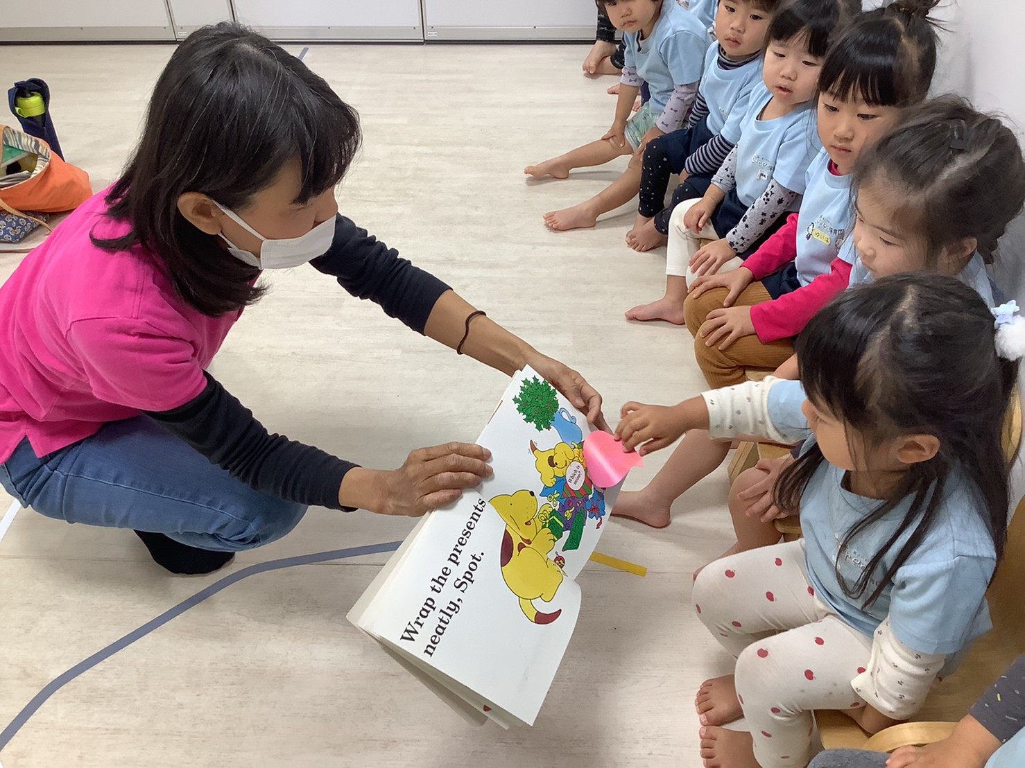 まきこ先生と一緒に英語の手遊びをしたり、仕掛け絵本の扉を開いたりと楽しそうでした😊