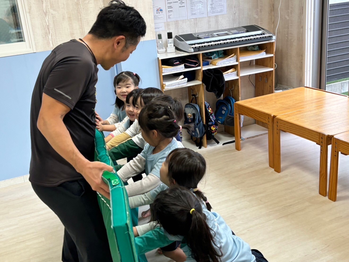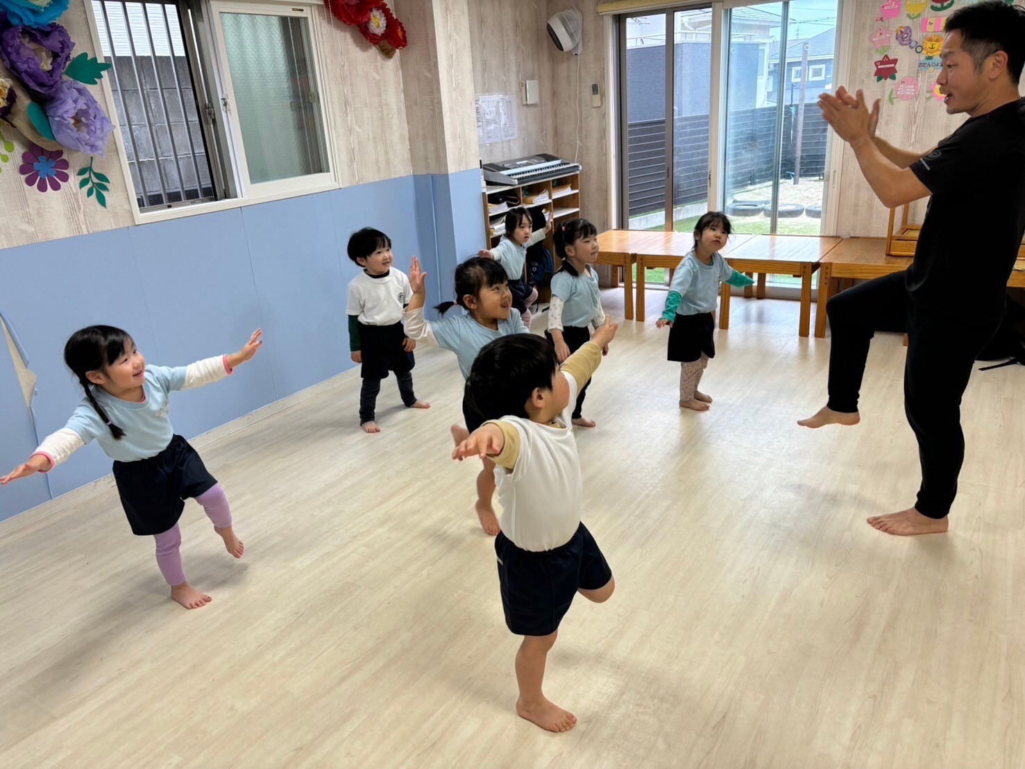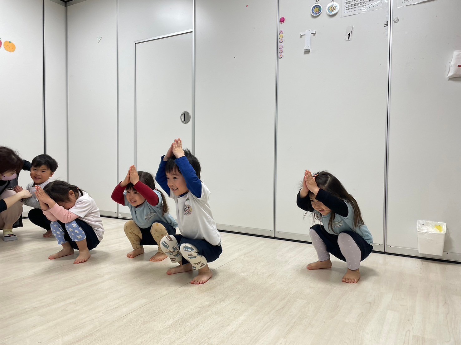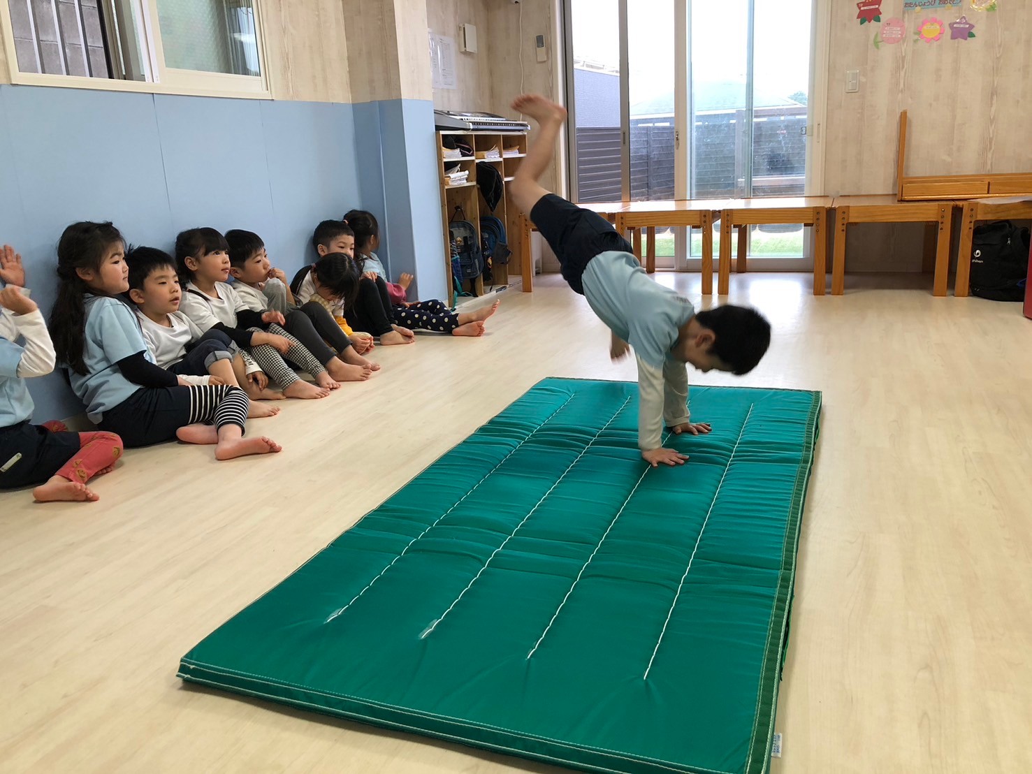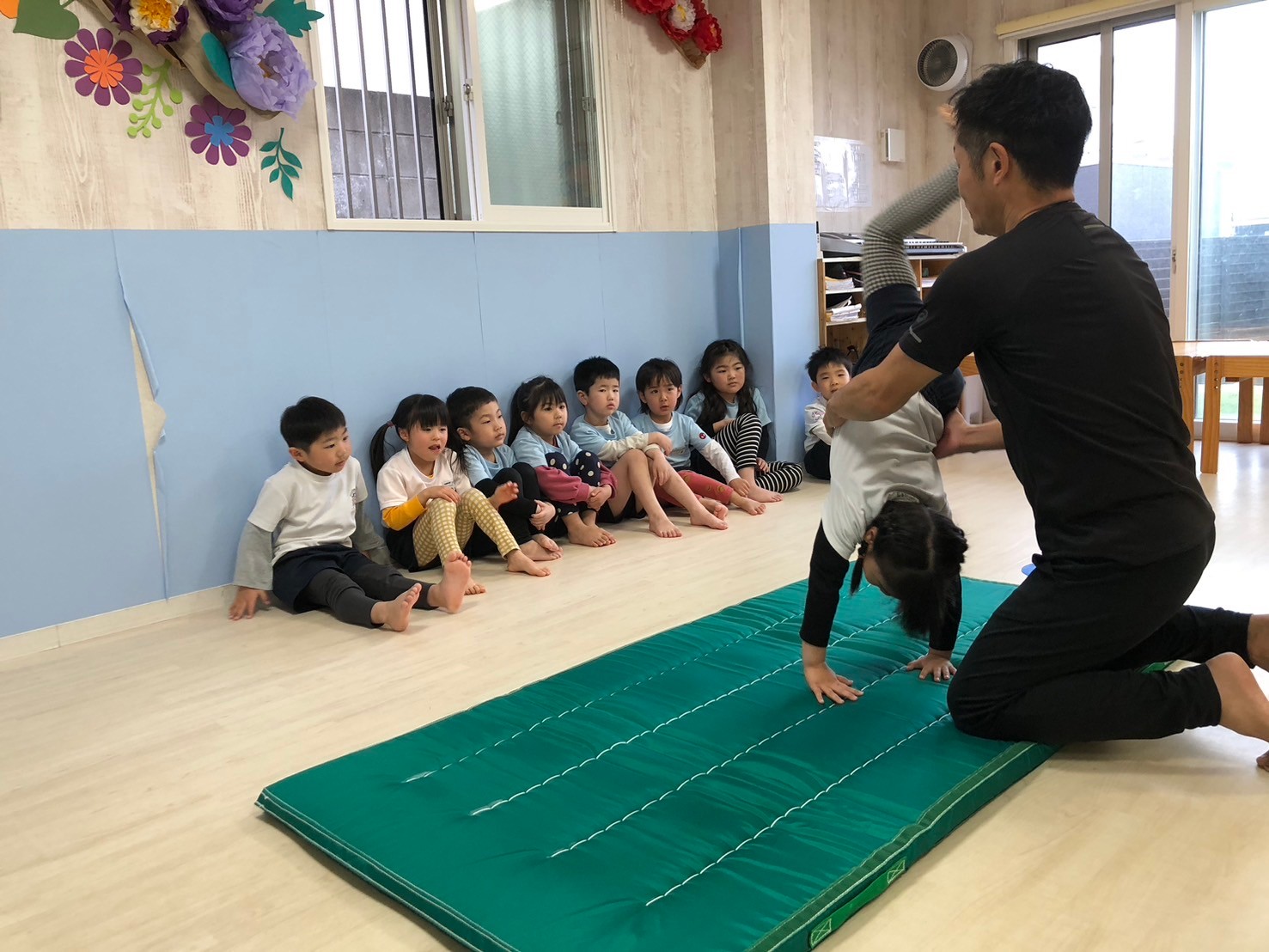 みんなが大好きなマット運動で前転をしましたよ❤️てる先生から上手!と沢山褒めてもらい嬉しそうでした!時間ギリギリまで「まだしたい!」「もう一回!」と大興奮でした😄