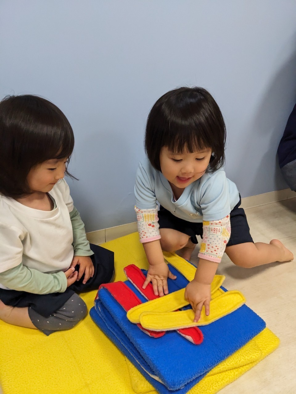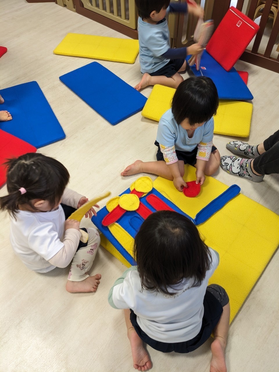 マジックテープを使ってペタペタおうちを作ったり、お布団にしたりしたりと、お友だちとワイワイごっこ遊びをして楽しみました☺️