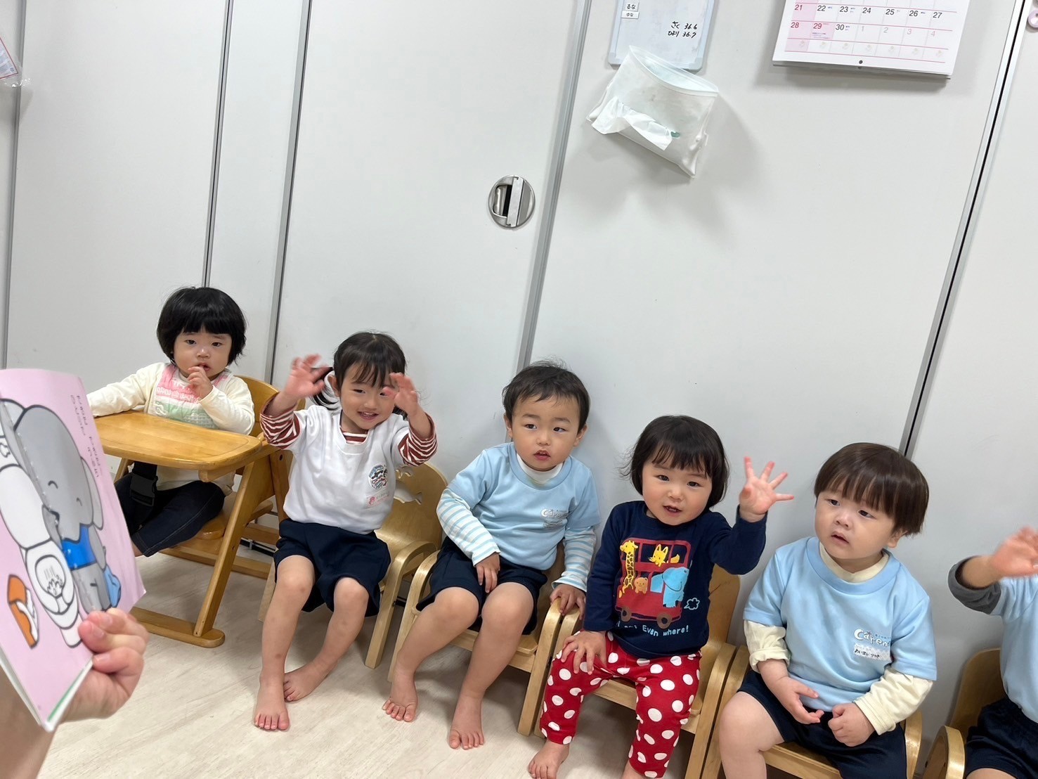絵本の読み聞かせでは落ちついて座って見れる時間が長くなり、リアクションをとりながら楽しむ子どもたちでしたよ😍