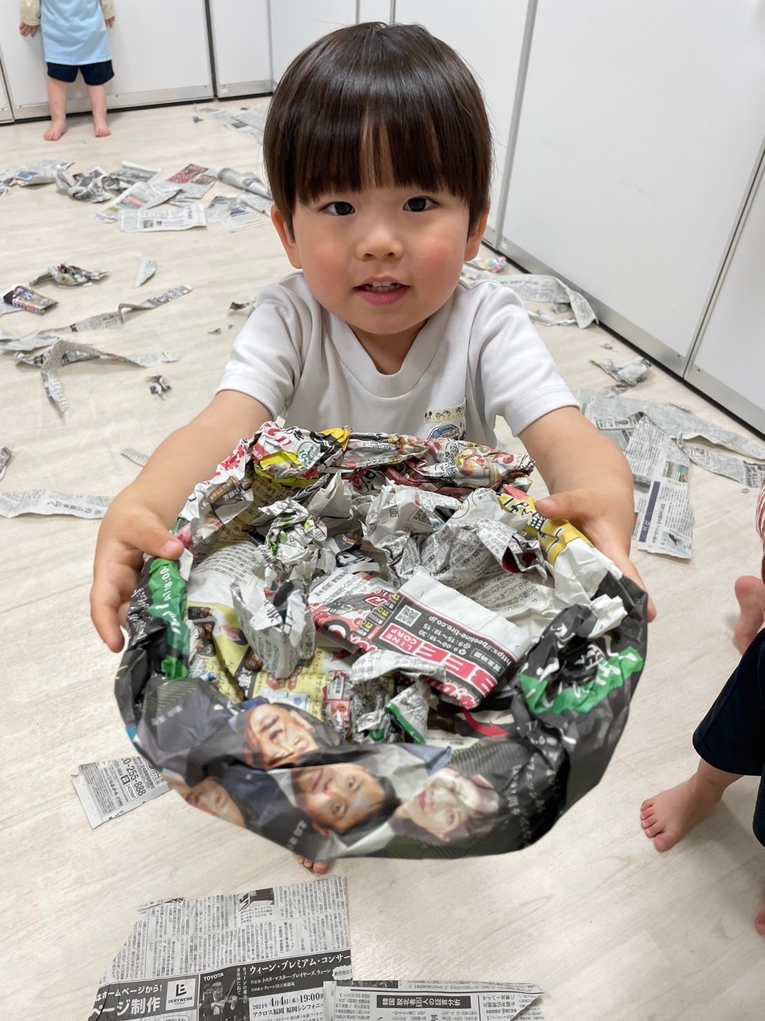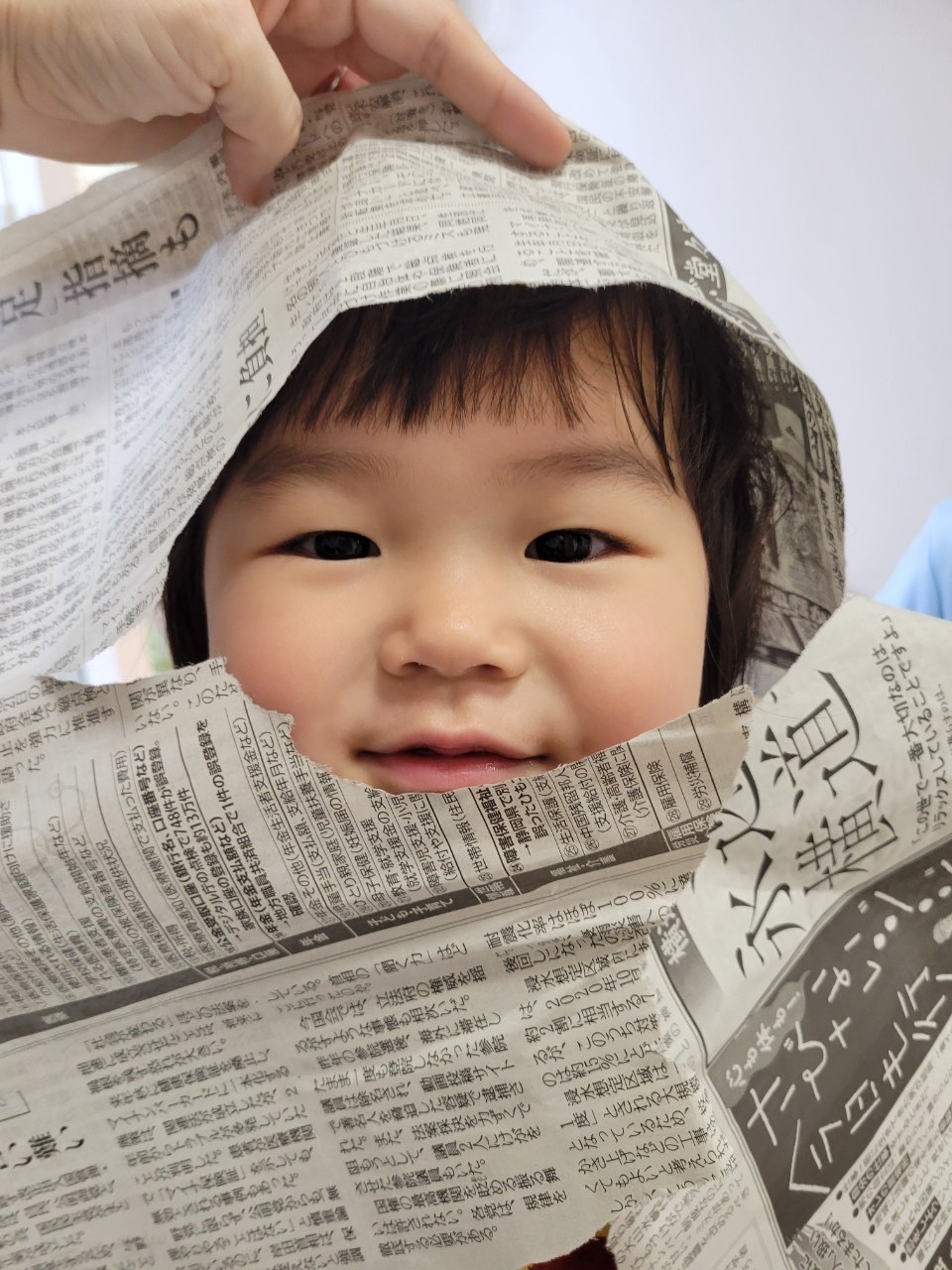 今日は雨で外にはでられませんでしたが、元気いっぱい新聞紙遊びを楽しみました😆💕