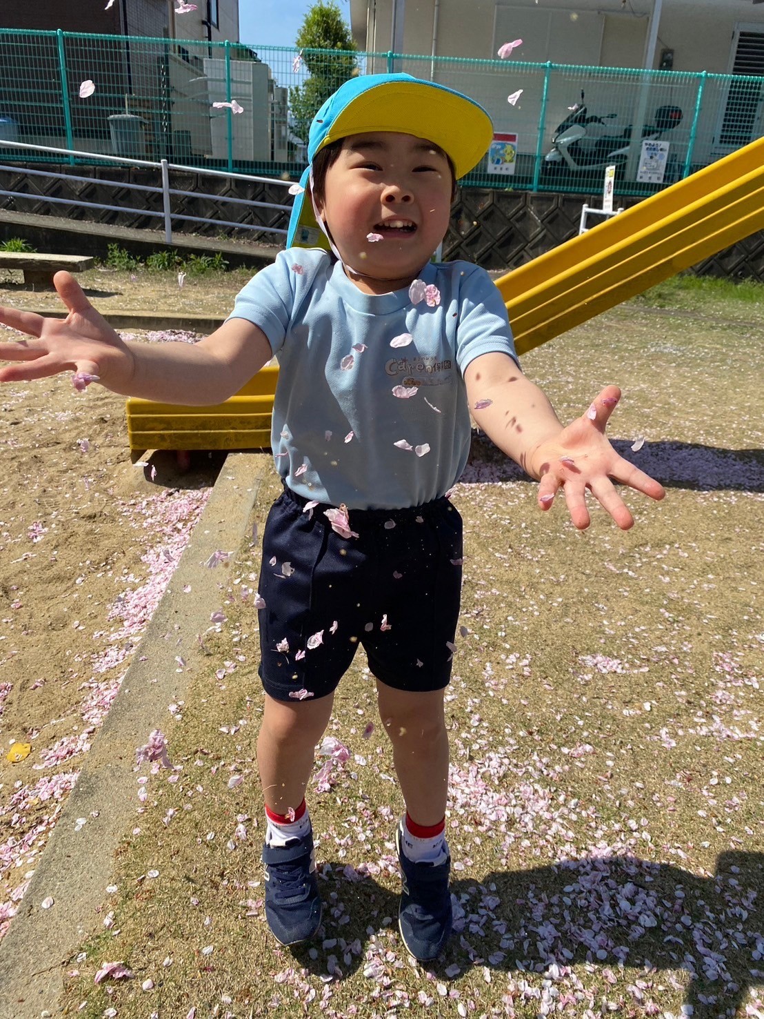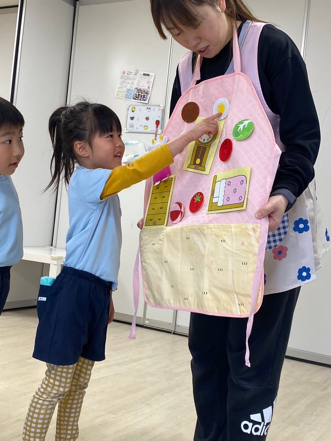 今日はエプロンシアターを観ました😊「7匹のこやぎ」の世界に入り『(ドアを)開けちゃダメー🙅』『あ、こやぎさんが時計の中に隠れてる、、、』と場面の様子を話していました😆とても可愛いかったです❤️その後、裏田公園へレッツゴー❗️公園でマラソンをしたり、桜吹雪を眺めたりと、思い思いに遊ぶことができました🌸桜が見納めになってきましたが葉桜もいいものです🍃季節の移り変わりを子どもたちと一緒に感じていきたいと思います😊