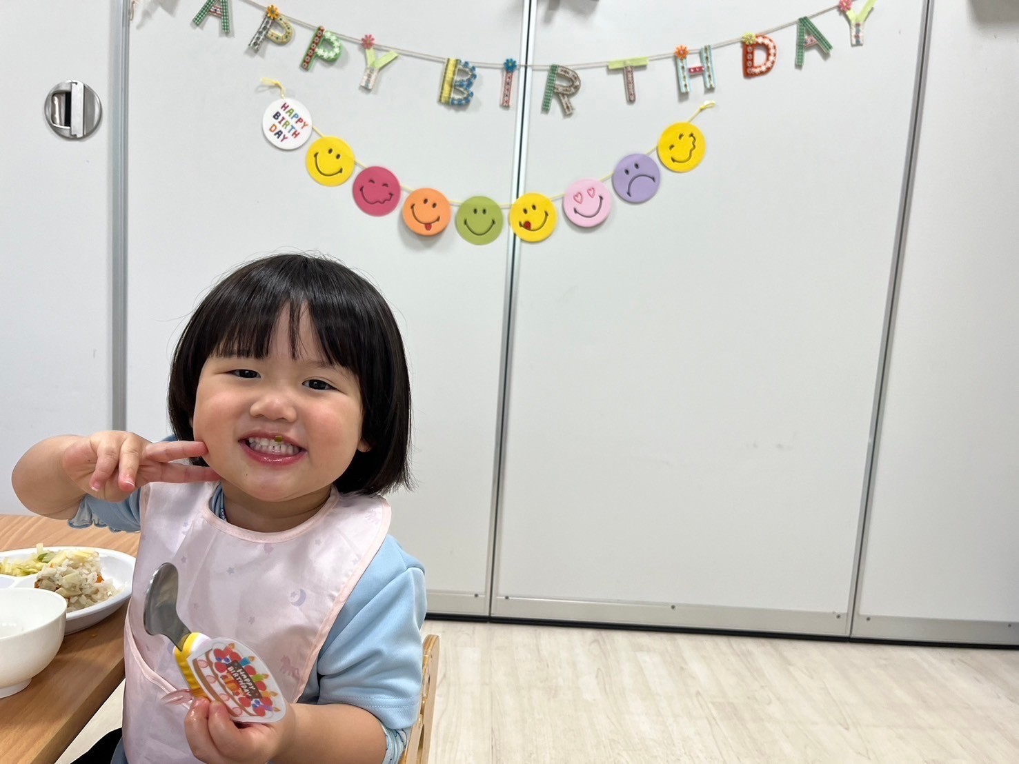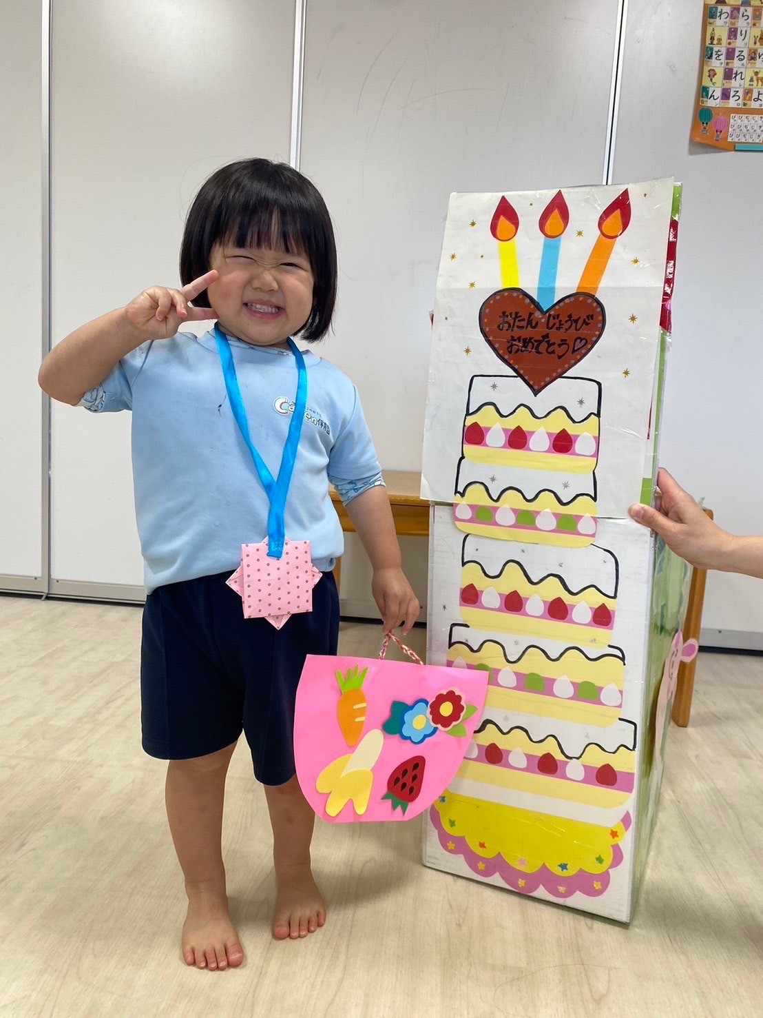 初めて誕生日会に参加した新入園児のお友だちもリアクションをしながら笑顔で参加ができていましたよ😍