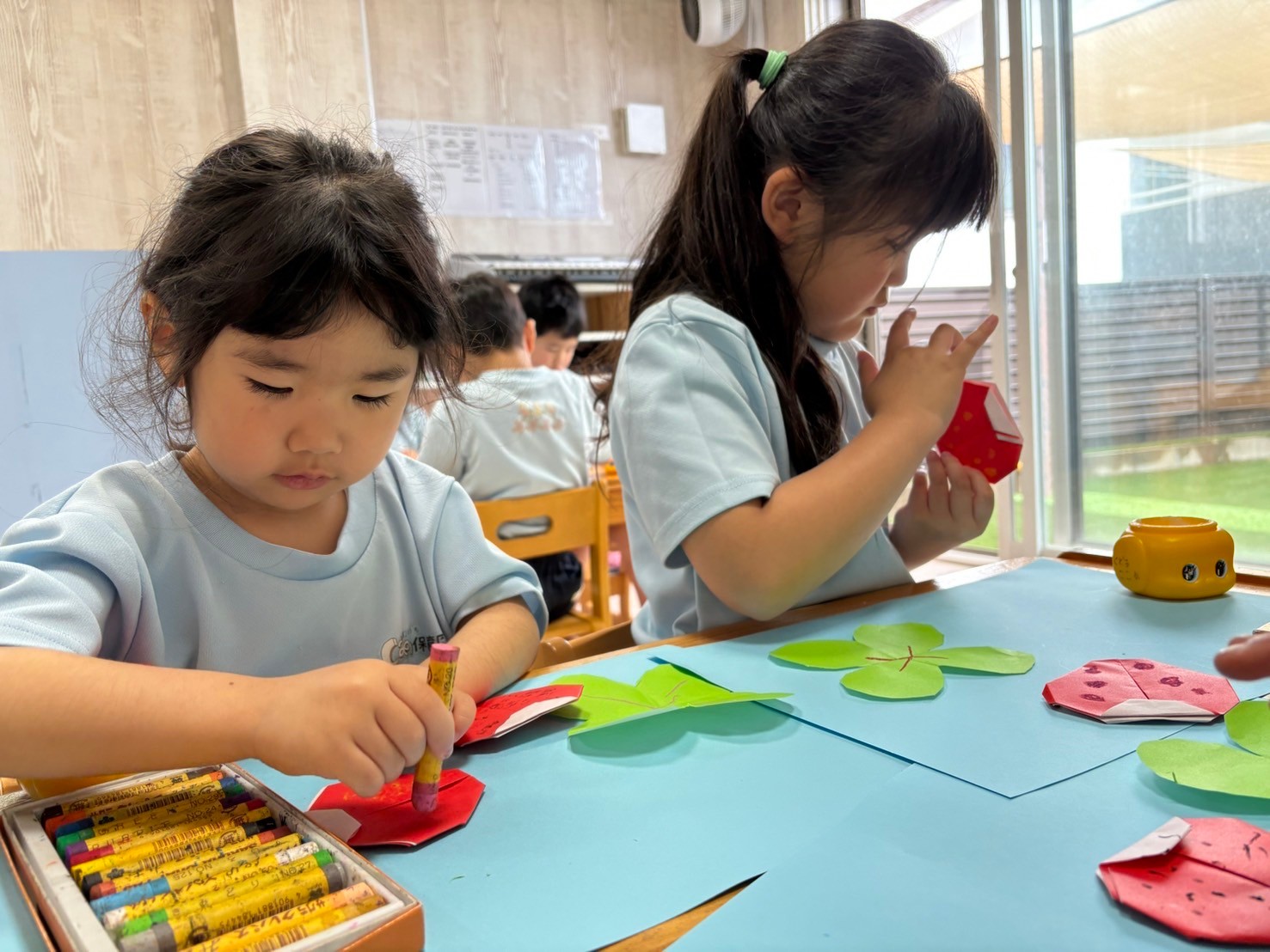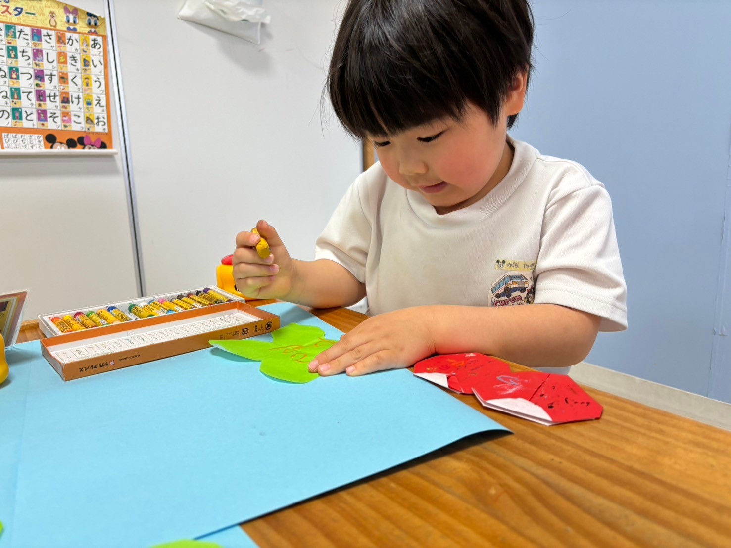 その後、身体測定と製作をしました✂クレヨンが止まらず、みんな画伯でしたよ🎨