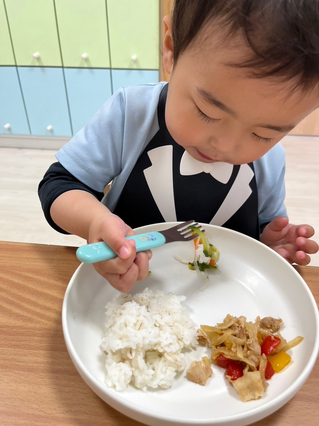 スプーンの持ち方もみんなで頑張っています🥄🥰【うさぎ、こあら、きりんぐみ】