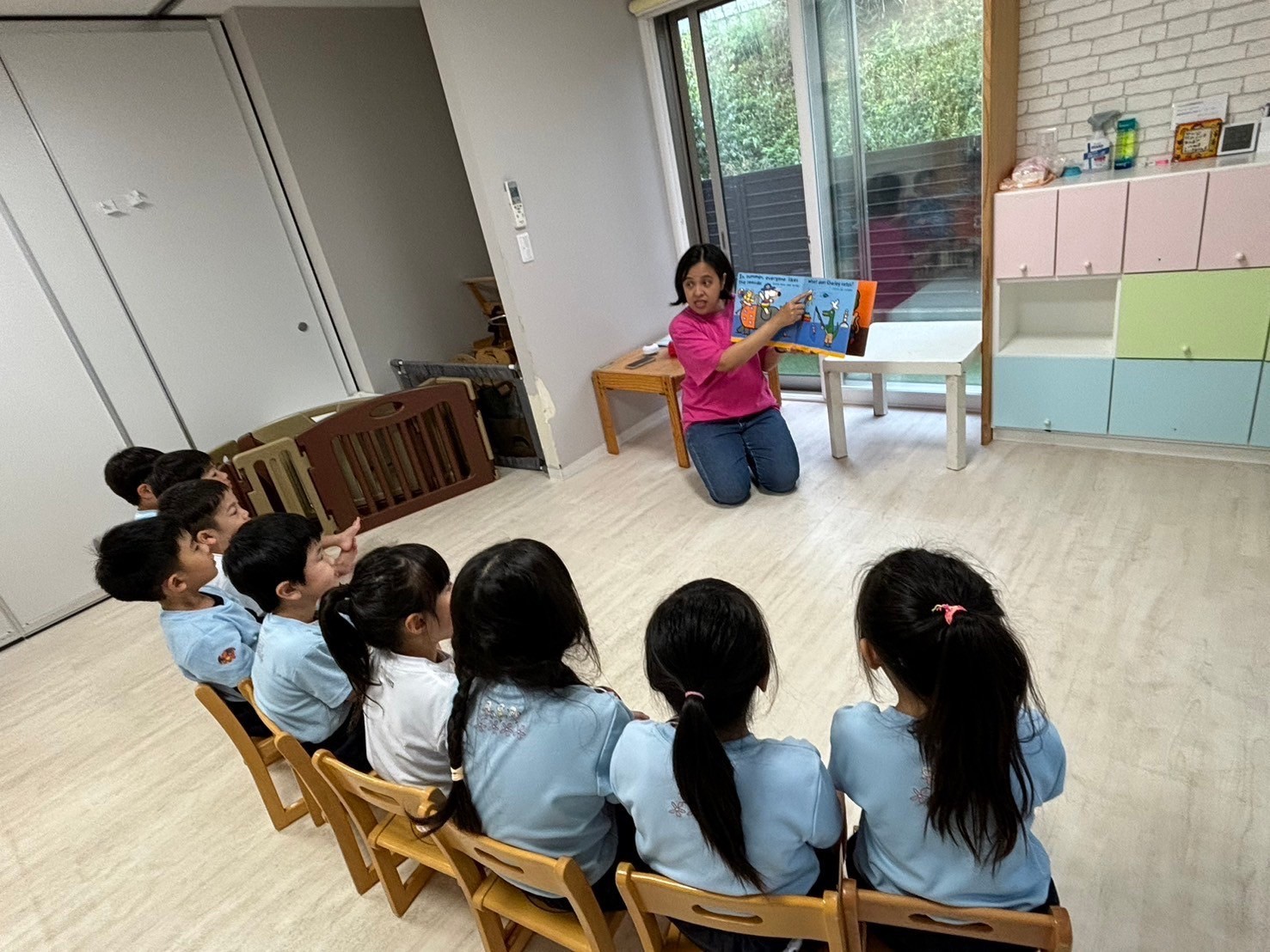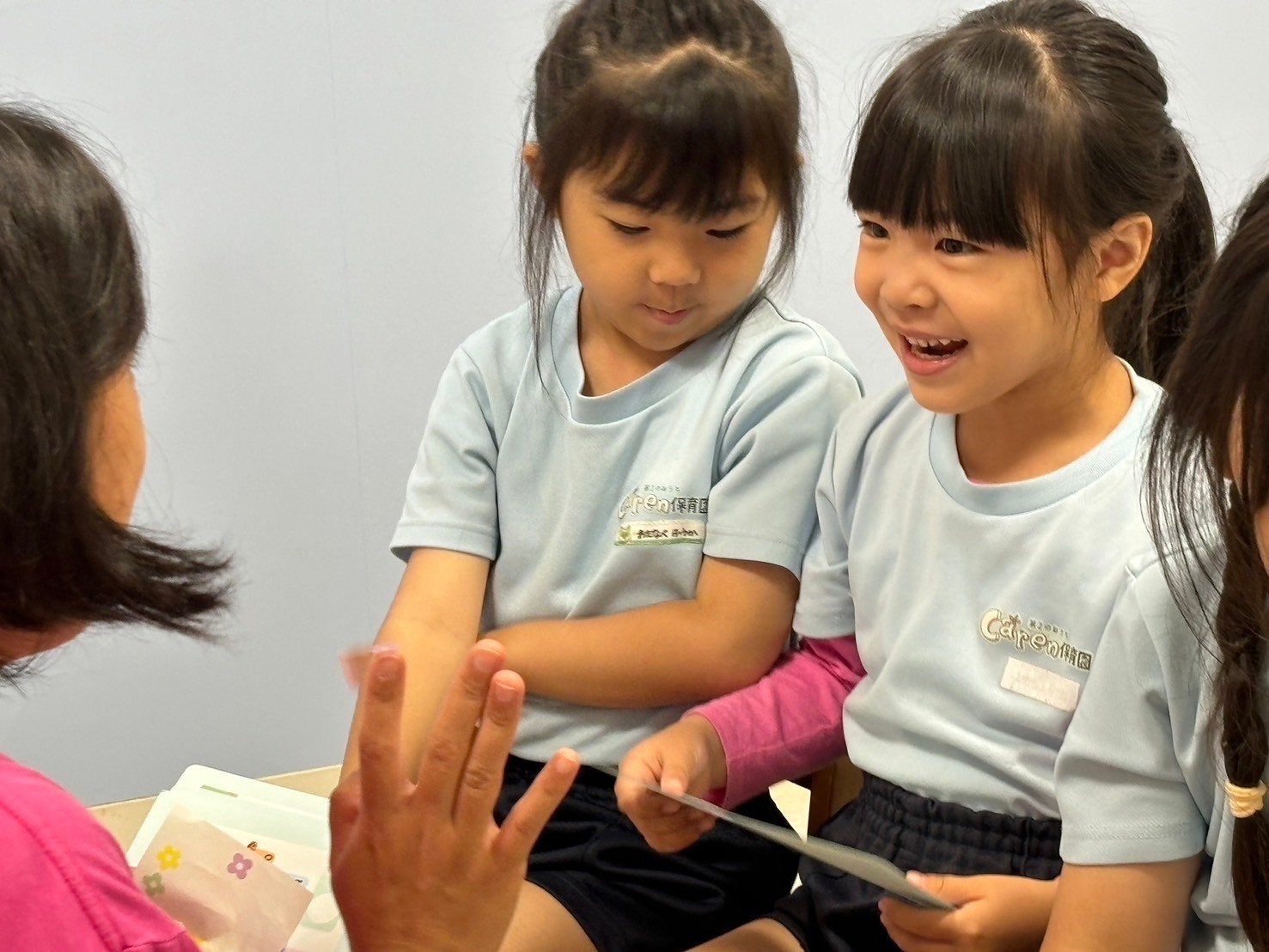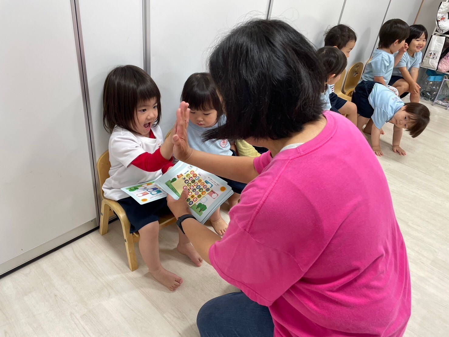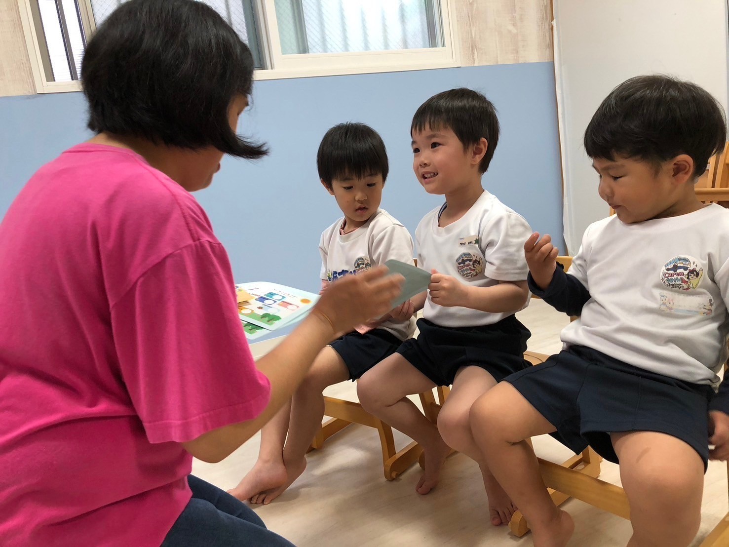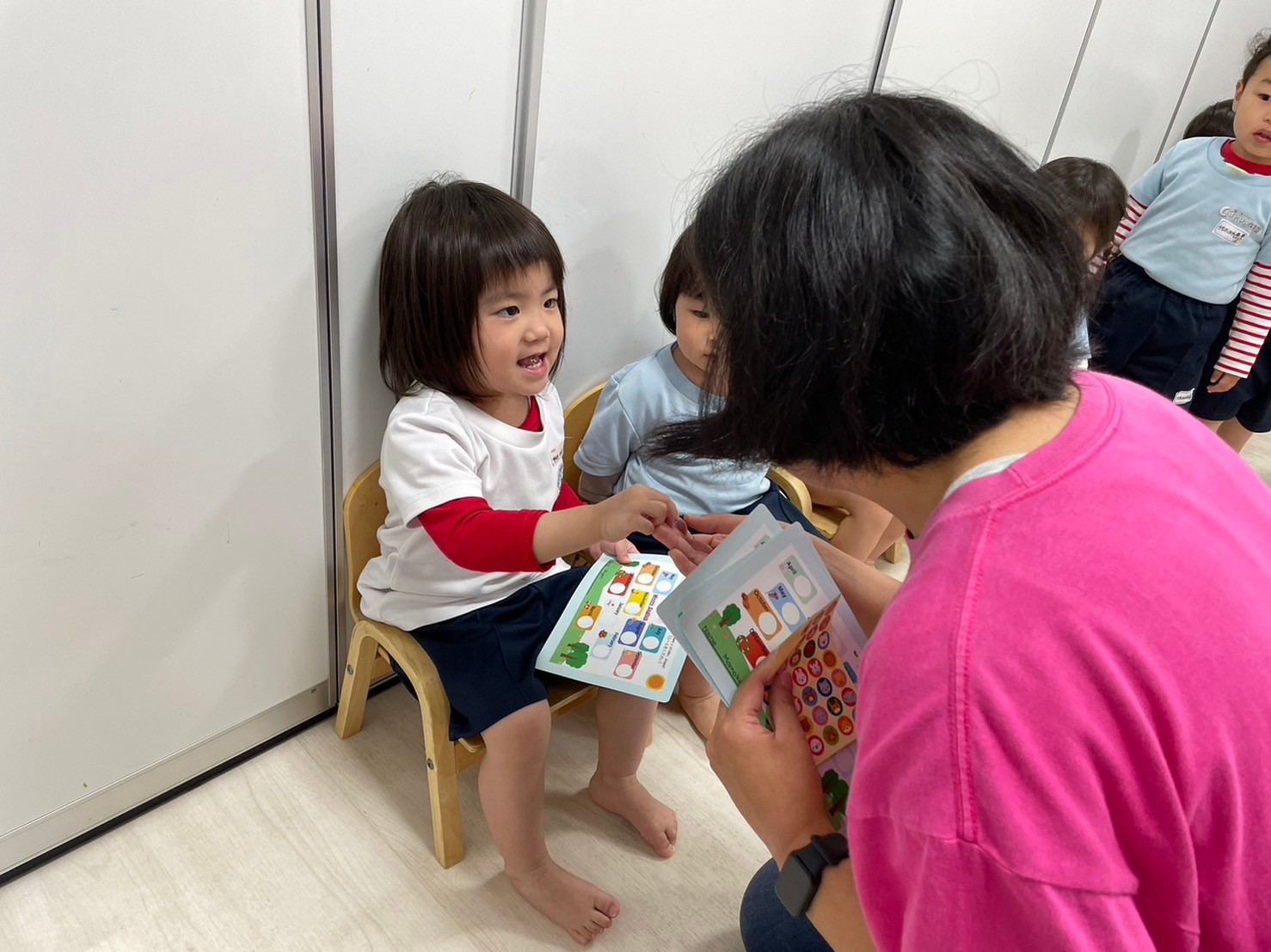 英語レッスンでは、チャリナ先生と一緒に絵本を見たり、カードをしたり元気な声がお部屋に響いていましたよ💗