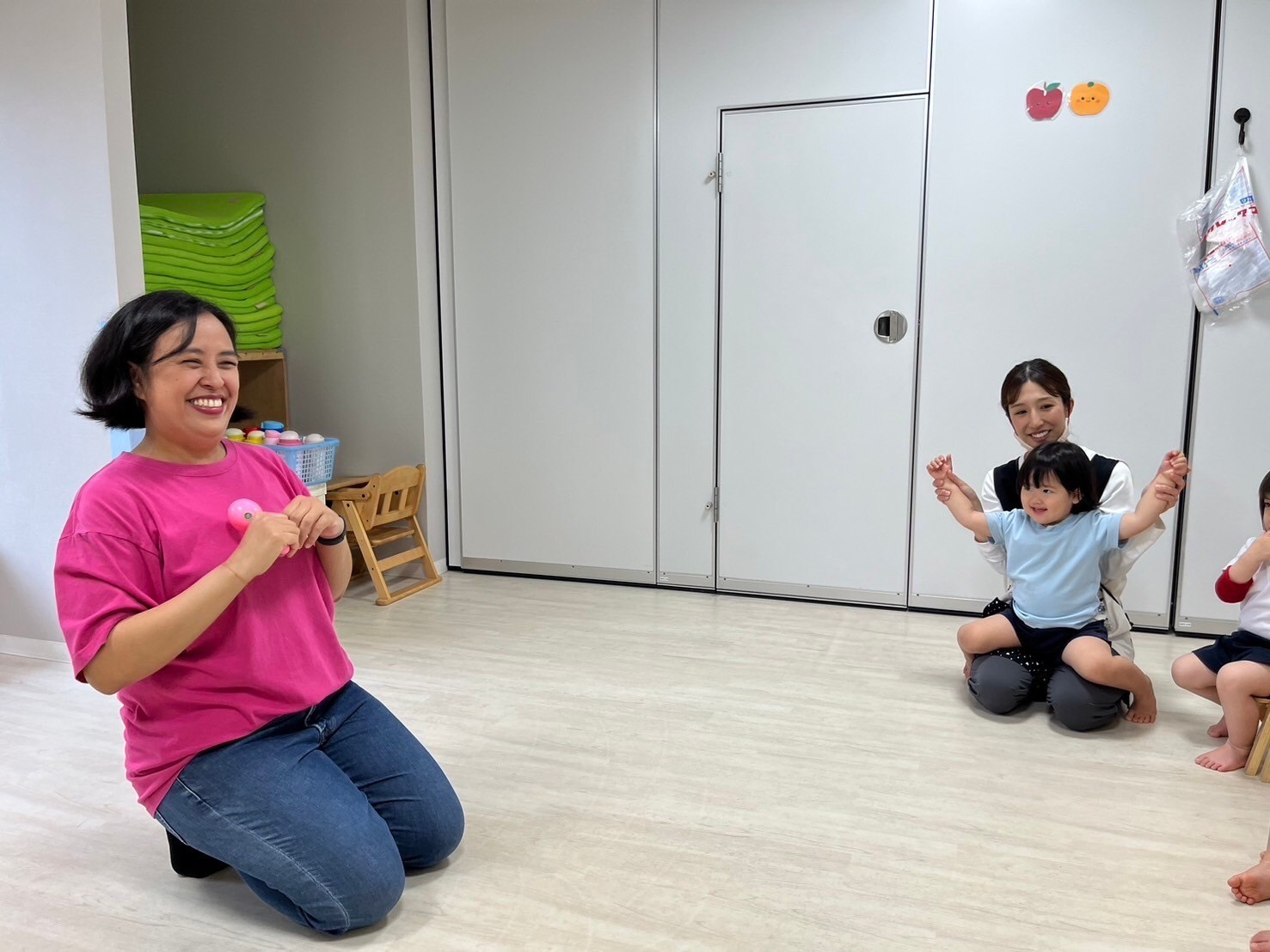 英語レッスンでは始め緊張気味だった子もいましたが、チャリナ先生の明るく元気なジェスチャーを真似したり、単語を発語させながら楽しそうに参加をすることができていましたよ💖