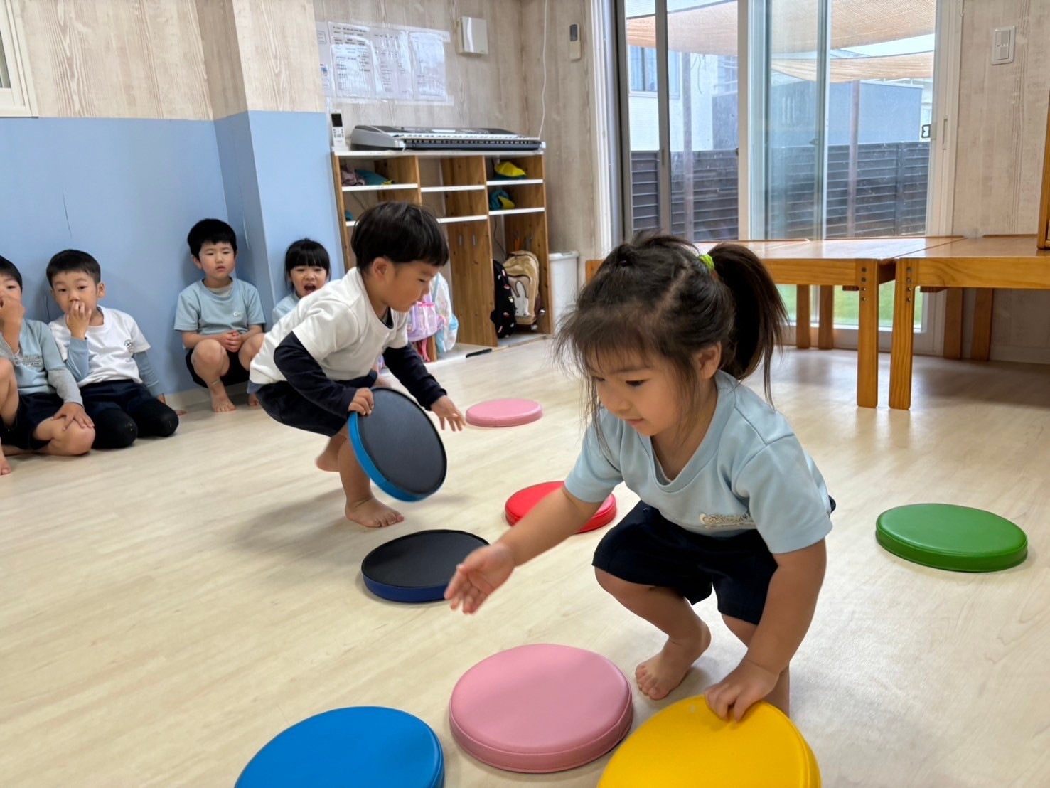 積極的に身体を動かし、リズムに乗って楽しむかわいい子どもたちでしたよ❣️これからも遊びに取り入れながら、遠足まで気持ちを盛り上げていきたいと思っています🕺🌟