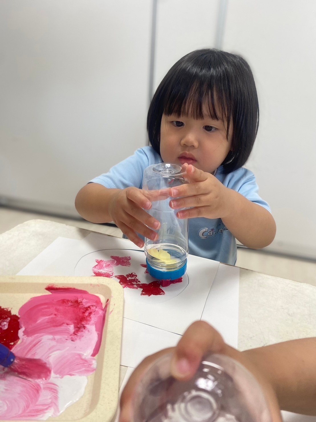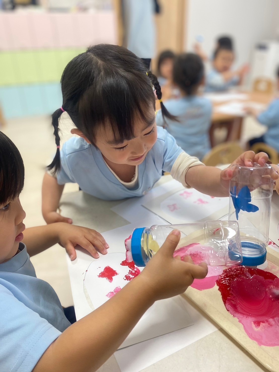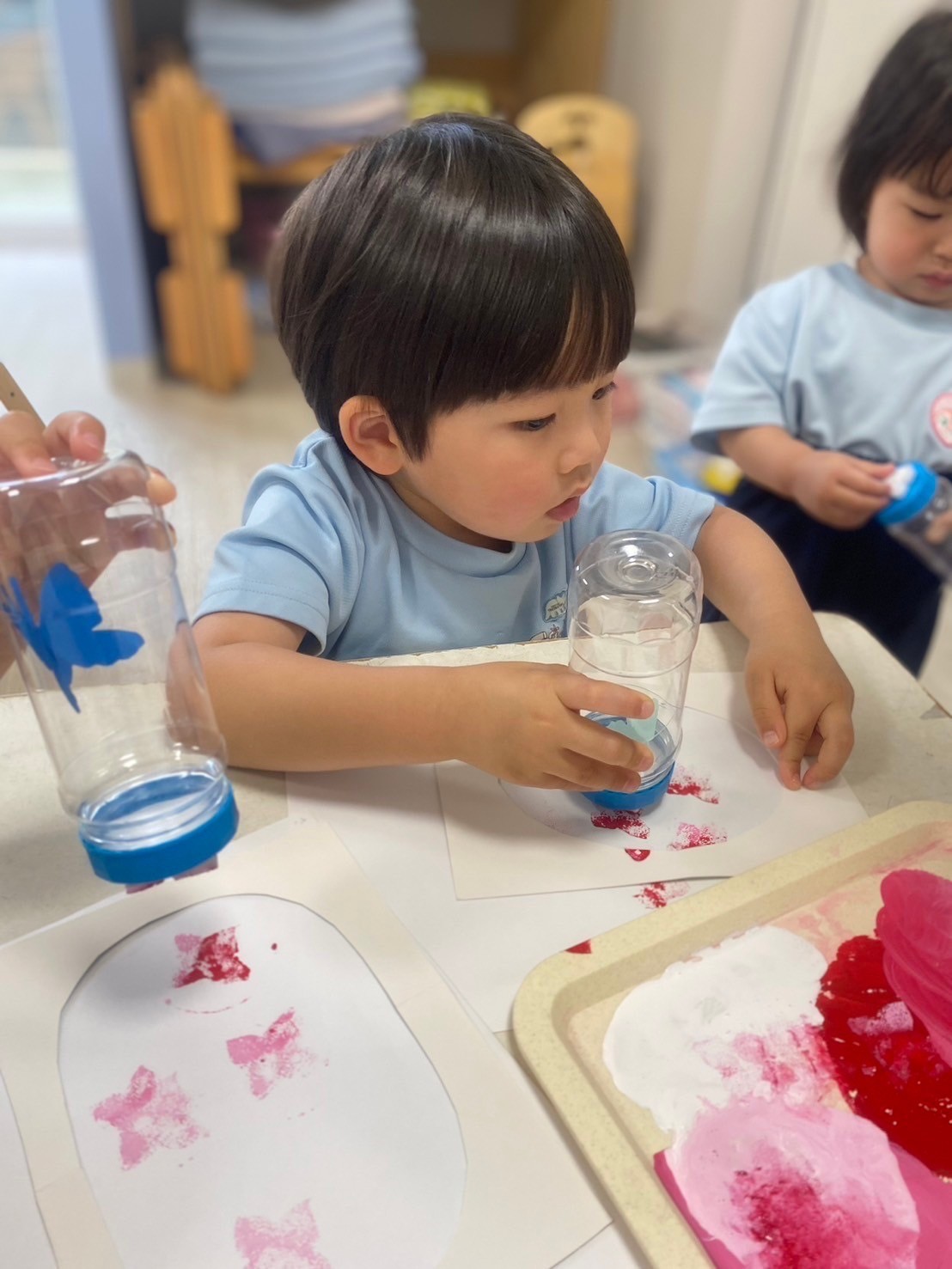 ひとり一つずつスタンプを手に持ち色付けしました🩷「もっとした〜い」とじっくり時間をかけて楽しんでいました。【うさぎ、こあら、きりんぐみ】