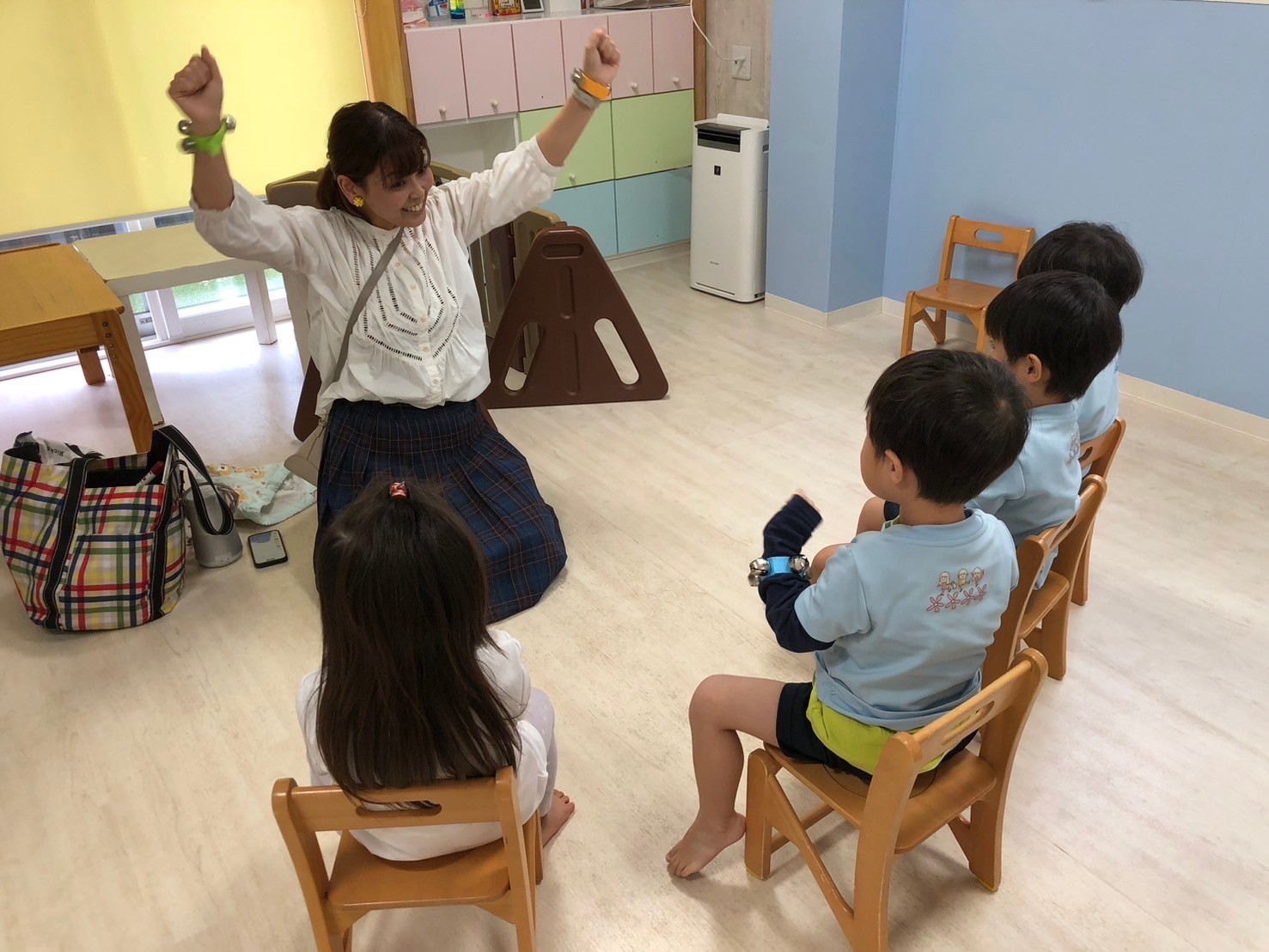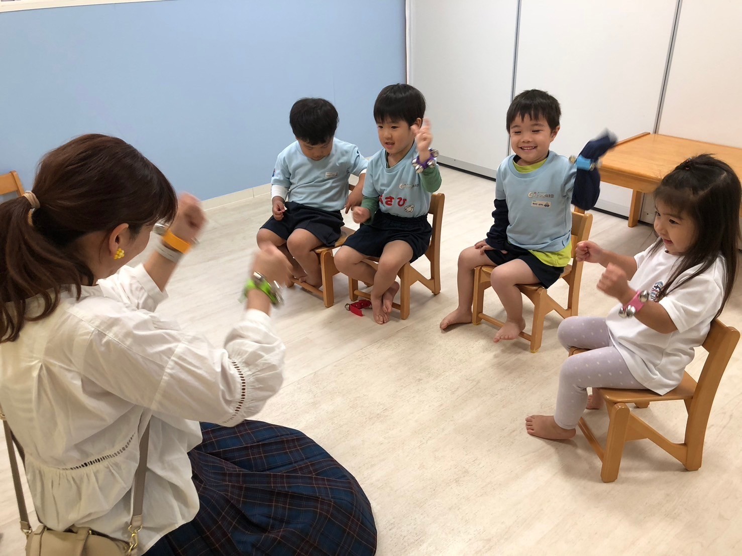 絵本の読み聞かせの後はみんなの大好きなリトミックの時間🎵