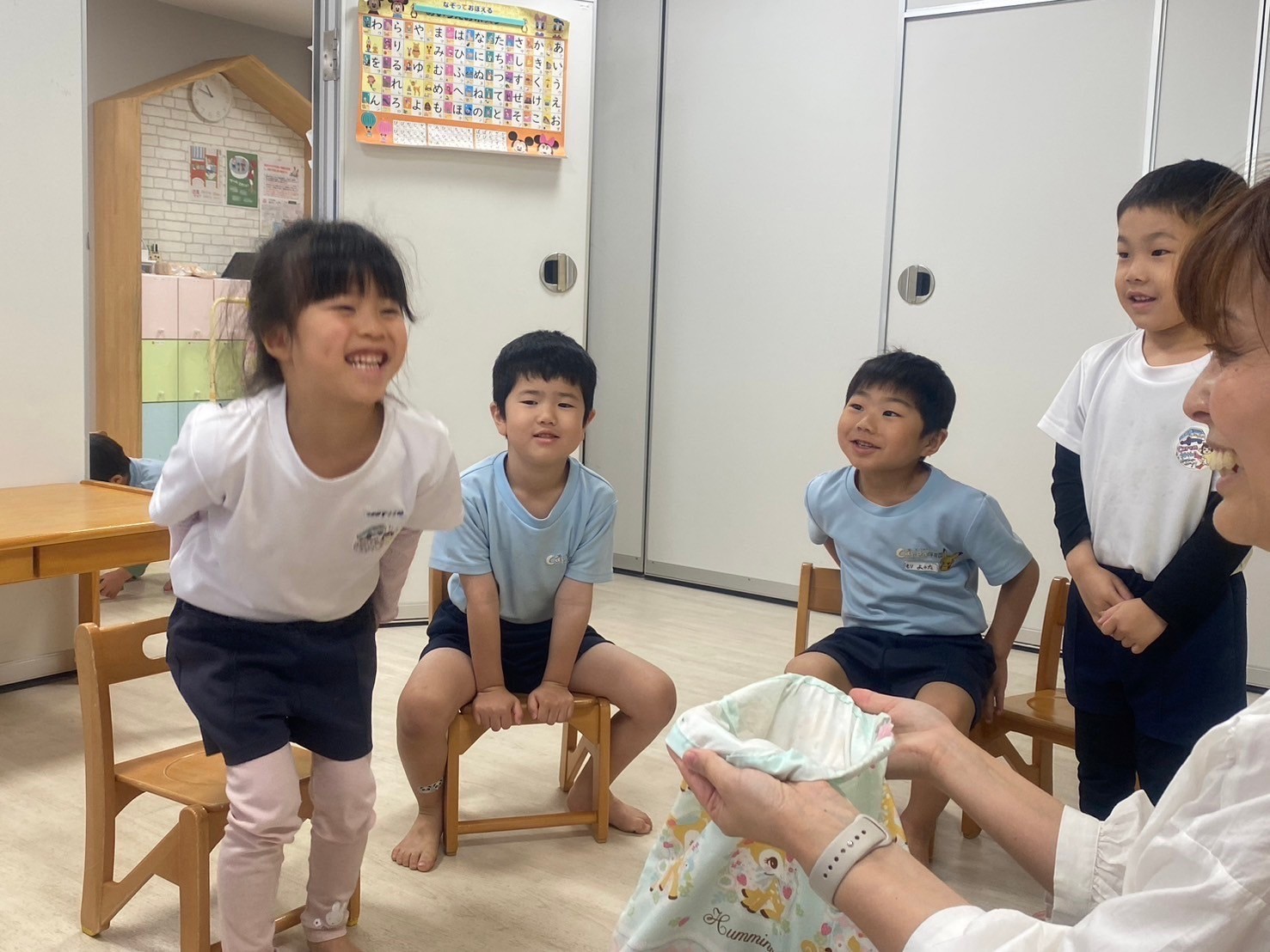 名前の文字数に合わせて太鼓をたたいて喜ぶ子供達😊💕