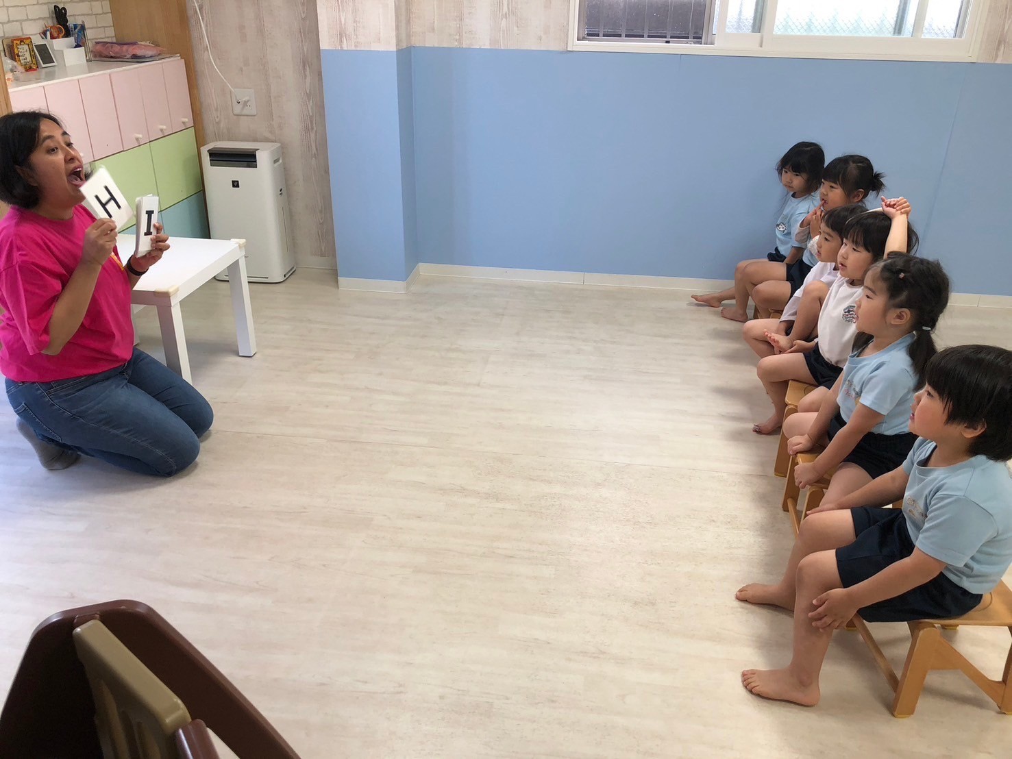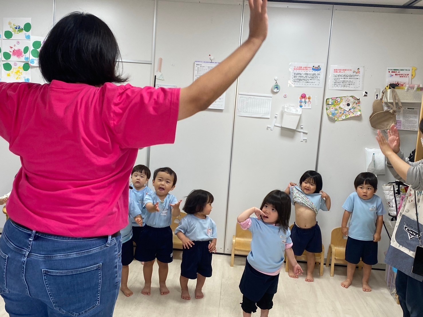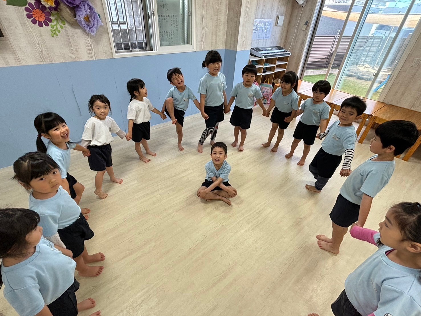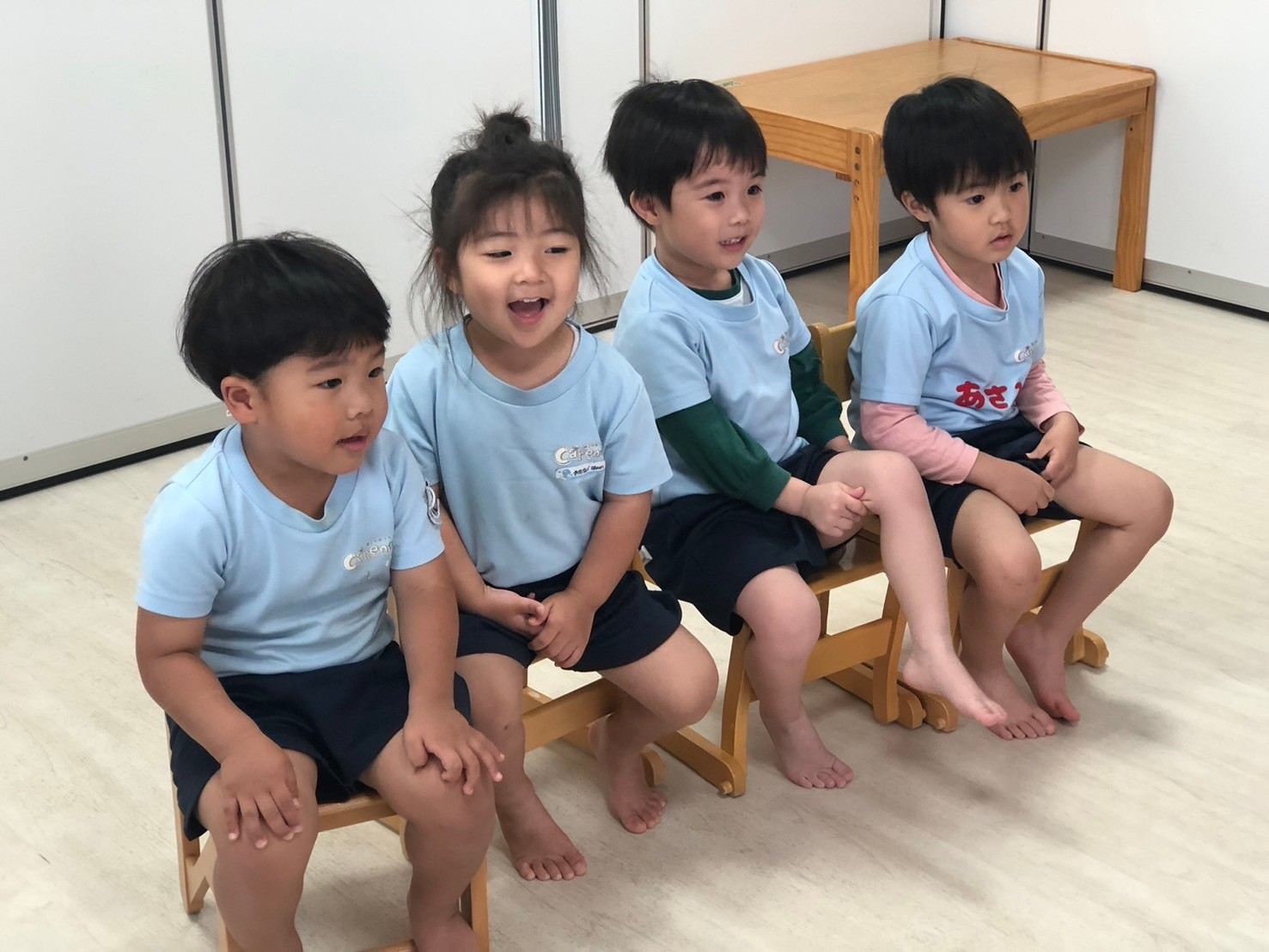 みんな大好きチャリナ先生の英語レッスンでは、先生の言葉をしっかり聞いて、上手に真似っこしていました😊大きな声で言えるお友だちがすごく増えていました✨「あたまかたひざぽん」を英語で歌いながら身体を動かすことも、とても上手に楽しんでいました😊