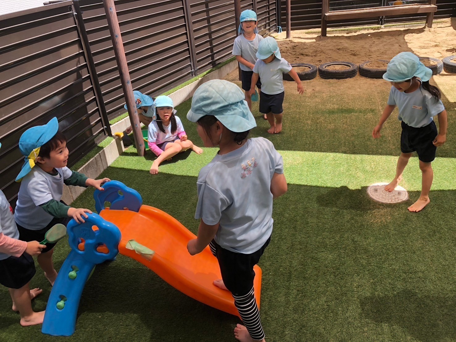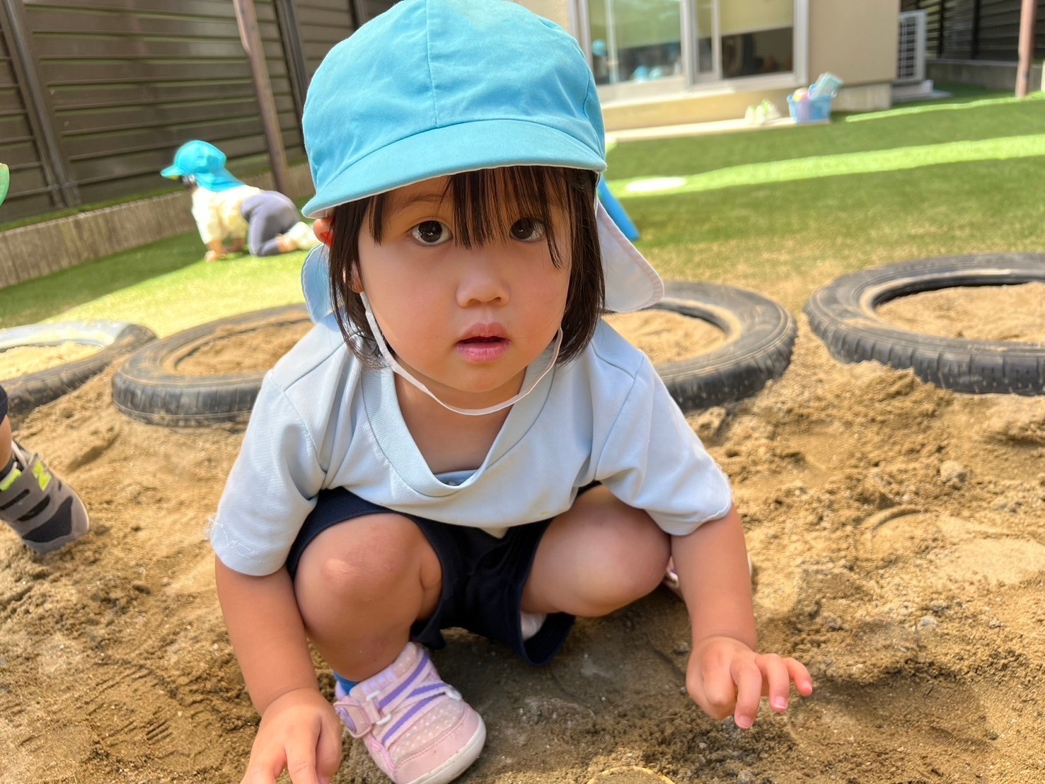 チャリナ先生とたくさん楽しんだ後は、みんなで園庭へ遊びに行きました❤️砂場で、山を作って、トンネルをみんなで掘ったりして、とても楽しい時間を過ごしました☺️【うさぎ、こあら、きりんぐみ】