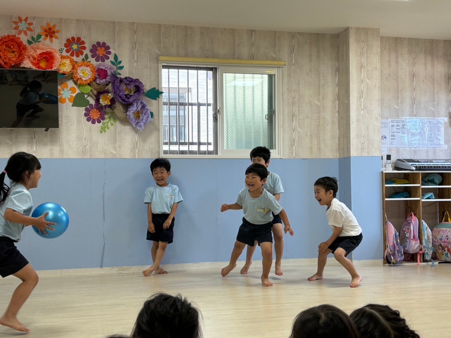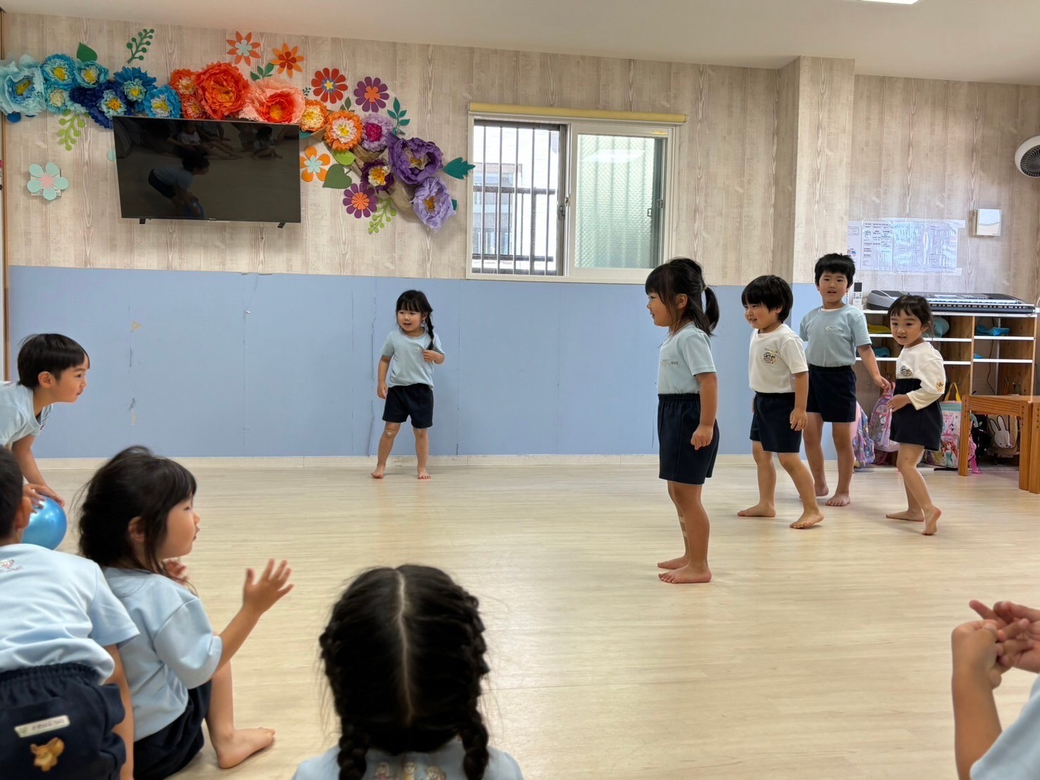 今日は絵本の先生からの読み聞かせの後、運動会に向けてソーラン節やパラバルーンの練習をしました❗️