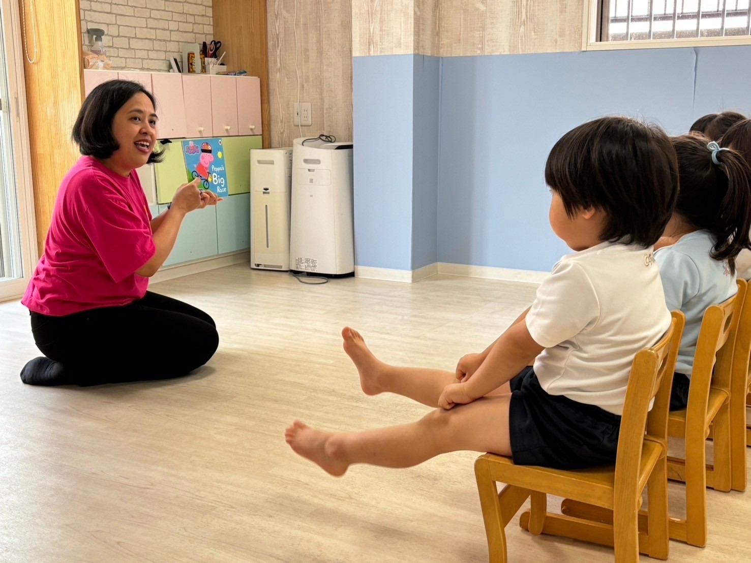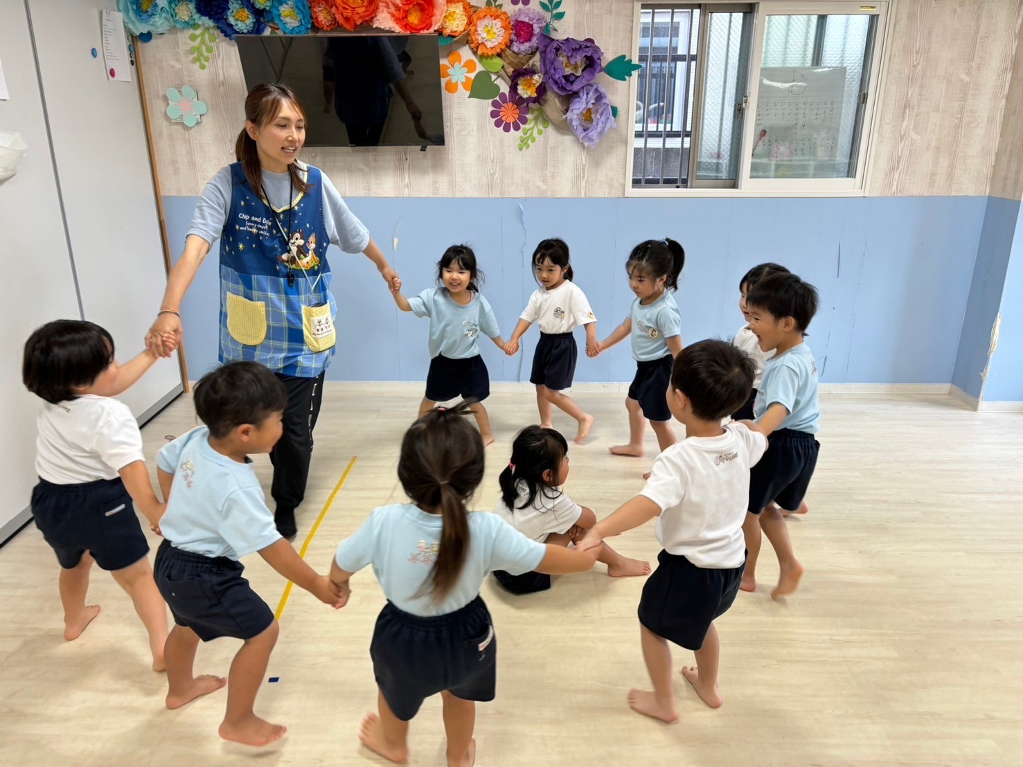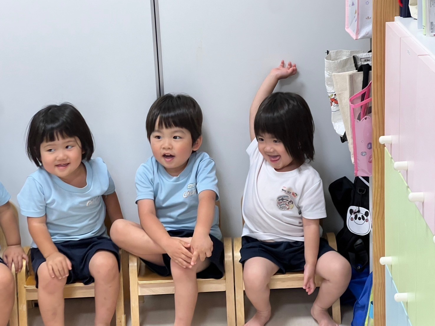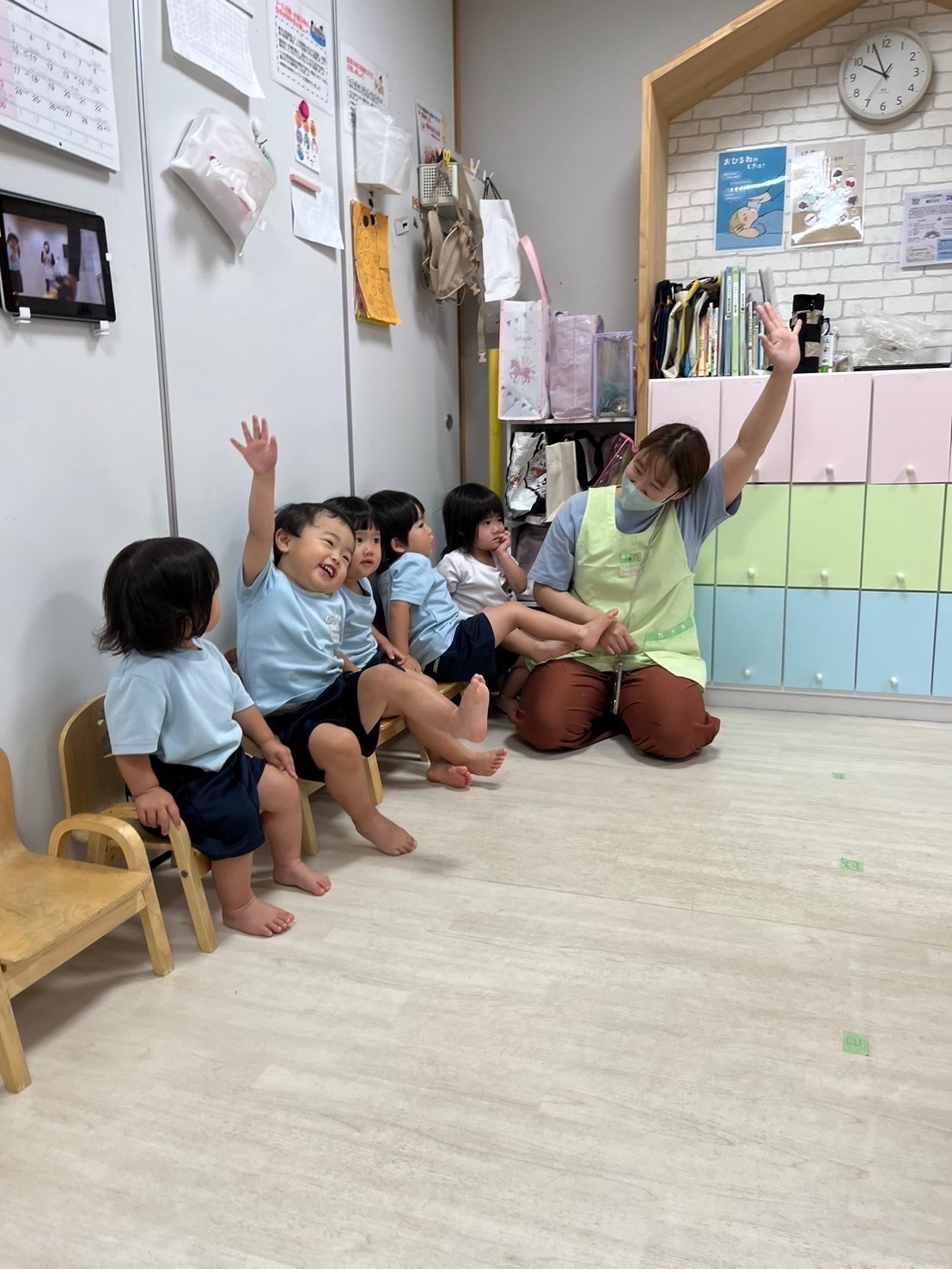 今日は英語レッスンday😍チャリナ先生の姿が見えると喜ぶ姿が見られ、沢山身体をリズムよく動かしたり、発言しながら楽しめていましたよ💓色や乗り物の絵本にも興味を示し、最後まで集中して参加ができました😄新入園児のお友だちは初めてのレッスン参加でしたが、 落ち着いて参加ができていて、穏やかな時間が流れていました🎵運動会練習では競技のルールや流れを意識して楽しむ姿に成長が感じられ、笑顔が弾けていましたよ😆❣️