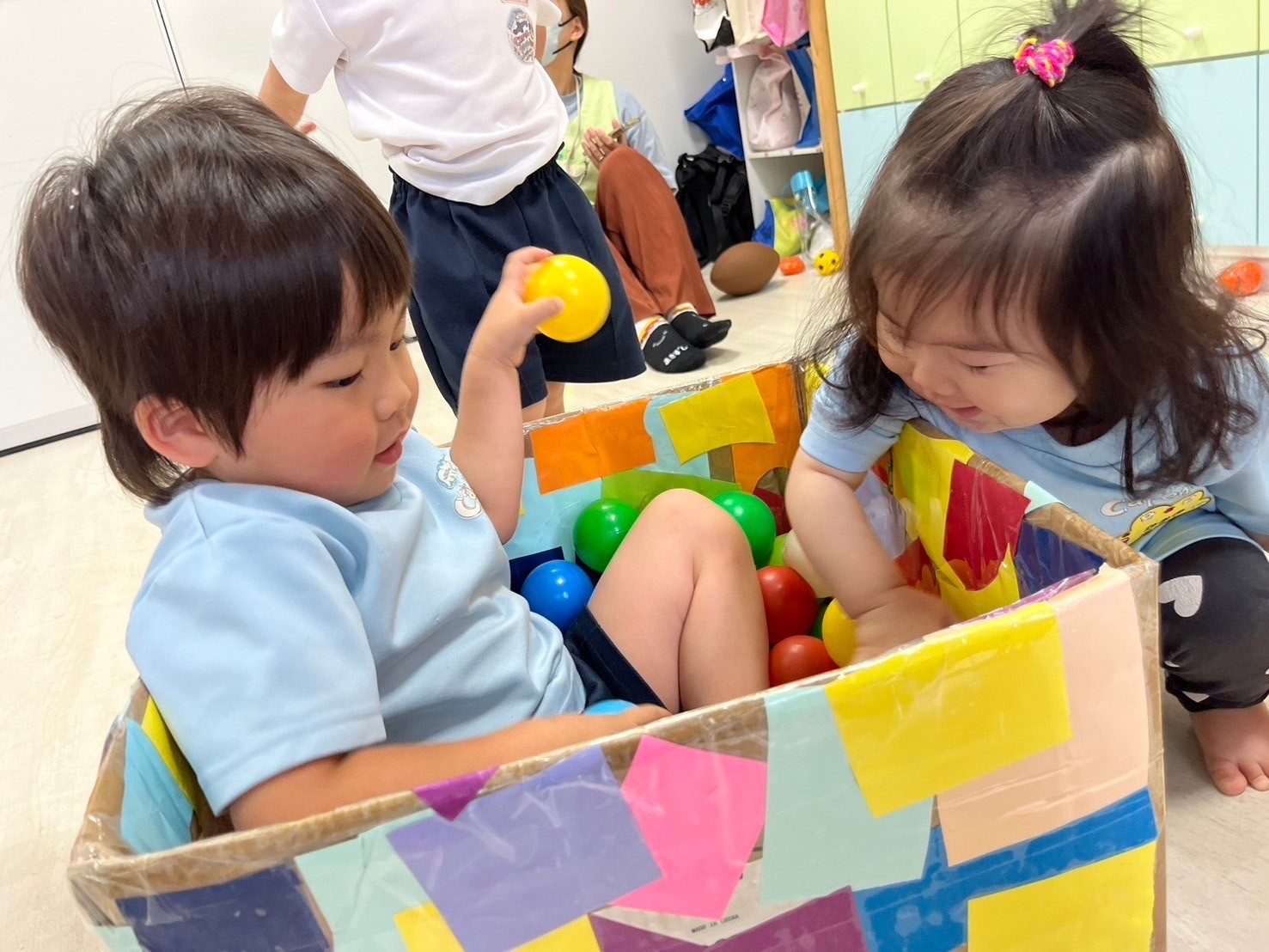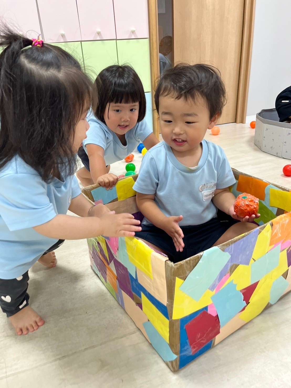 ボール遊びでは異年齢児でのコミュニケーションも楽しめていて、協力しあって遊ぶ姿が微笑ましかったです🥰【うさぎ、こあら、きりんぐみ】
